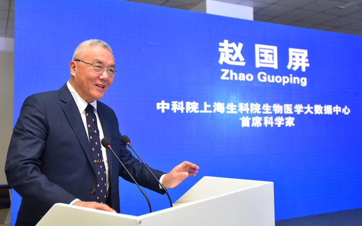 生物醫(yī)學(xué)大數(shù)據(jù)中心首席科學(xué)家趙國(guó)屏院士作報(bào)告