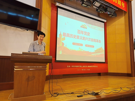 隨后,黨支部書記應(yīng)浩研究員作了題為《百年黨史——最具歷史意義的六次自我革命》的黨課,分別從“打鐵必須自身硬是馬克思主義政黨的內(nèi)生特質(zhì)”、“百年黨史,最具歷史意義的六次自我革命”、“刀刃向內(nèi)的自我革命永遠(yuǎn)在路上”等三個方面做了領(lǐng)學(xué)。通過對歷史事件的分析,他闡明了自我革命是共產(chǎn)主義事業(yè)的生命力所在,是共產(chǎn)黨人與生俱來的優(yōu)良政治品質(zhì),同時強調(diào)中國共產(chǎn)黨之所以能夠歷經(jīng)滄桑,仍然屹立于世界政黨之林,與其具有的鮮明自我革命精神是密不可分的。