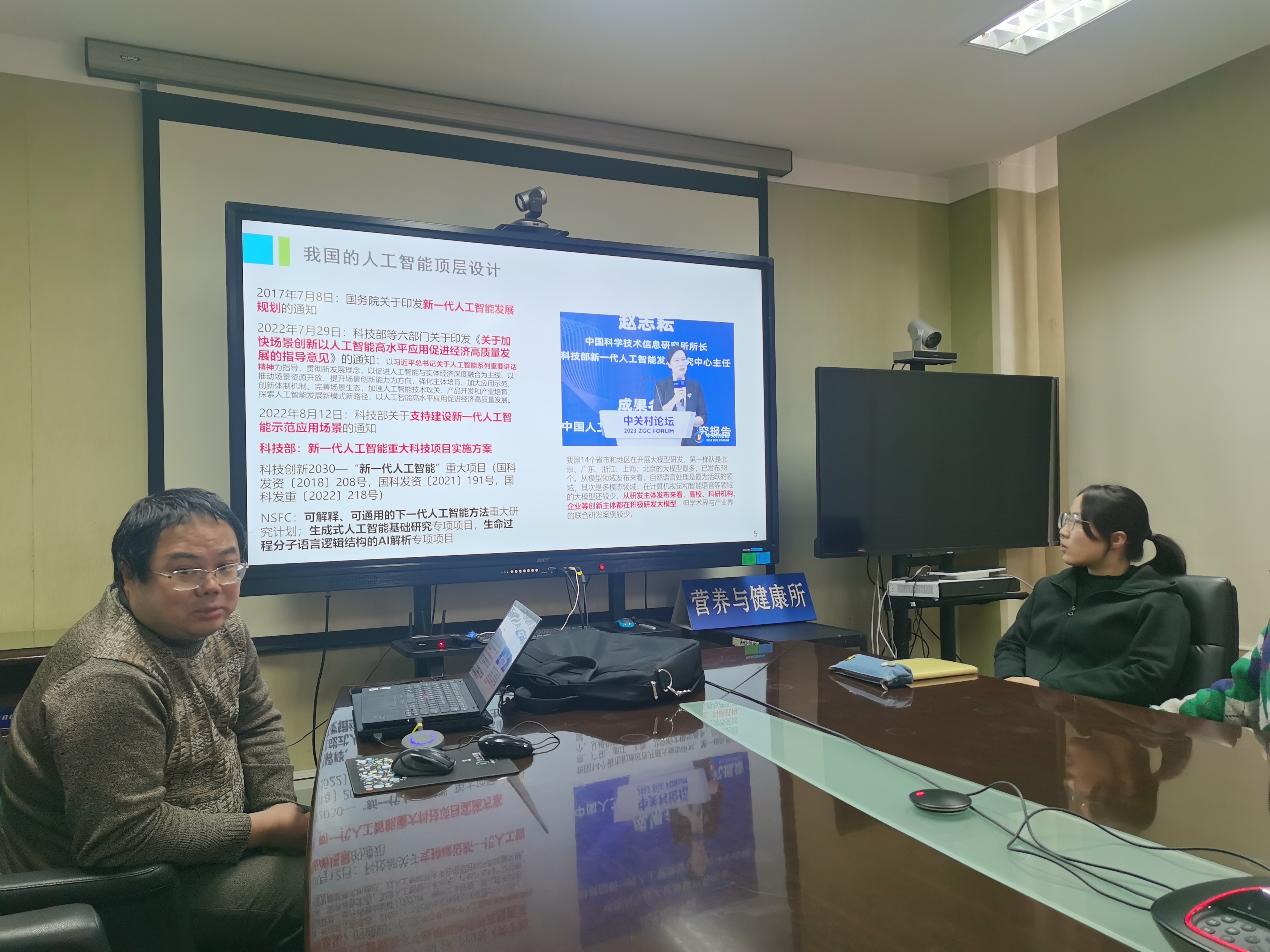 生物醫(yī)學(xué)大數(shù)據(jù)中心副主任張國慶研究員以“努力搶占科技制高點(diǎn)”為主題,作《生物醫(yī)學(xué)預(yù)訓(xùn)練語言大模型》的報告,從“人工智能首次被寫入政府工作報告”出發(fā),介紹了國家對人工智能的重視和頂層設(shè)計。他回顧了通用大模型的發(fā)展歷史,并對國內(nèi)發(fā)展現(xiàn)狀和不足之處進(jìn)行了比較闡述。此外,他還結(jié)合自身實(shí)踐經(jīng)歷分享了生物醫(yī)學(xué)大數(shù)據(jù)中心在生物醫(yī)學(xué)預(yù)訓(xùn)練語言大模型領(lǐng)域的相關(guān)工作,引起了在場黨員同志和科研工作者們的廣泛思考和熱烈討論。