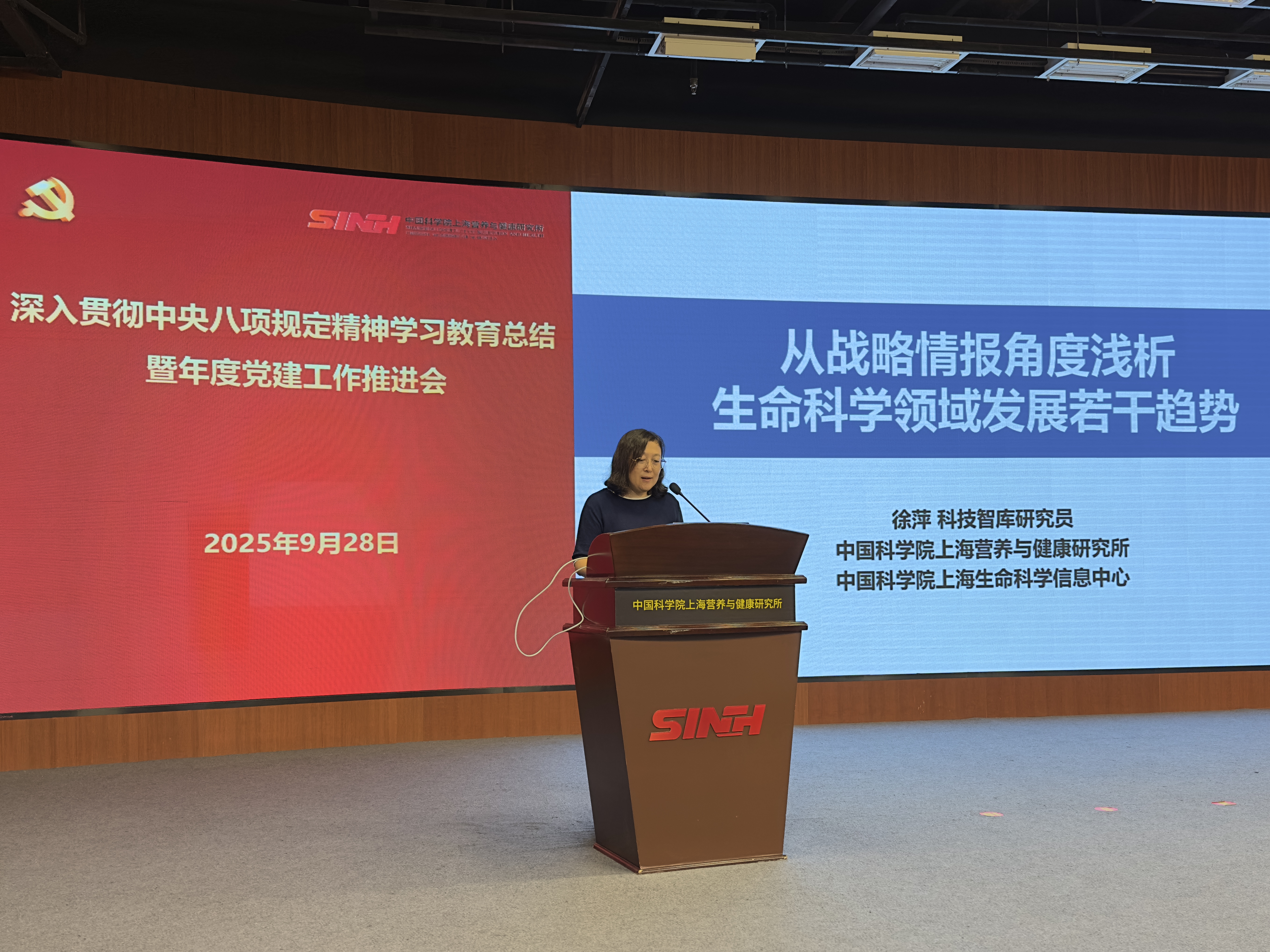 會(huì)上,研究所信息中心副主任徐萍研究館員聚焦“十五五”規(guī)劃作了題為“從戰(zhàn)略情報(bào)角度淺析生命科學(xué)領(lǐng)域發(fā)展趨勢(shì)”的報(bào)告;中國(guó)科學(xué)院分子植物科學(xué)卓越創(chuàng)新中心支部書記詹帥研究員受邀就如何打造“四強(qiáng)”支部作了經(jīng)驗(yàn)分享;研究所TZ9細(xì)胞實(shí)驗(yàn)任務(wù)黨員攻關(guān)小組李俞瑩和“未來家園”建設(shè)搬遷黨員突擊隊(duì)裴旸圍繞如何發(fā)揮好黨組織戰(zhàn)斗堡壘作用作了工作交流;黨委辦公室對(duì)標(biāo)黨建督導(dǎo)和政治巡視要求,對(duì)全所黨建工作重點(diǎn)任務(wù)進(jìn)行了梳理和分解。