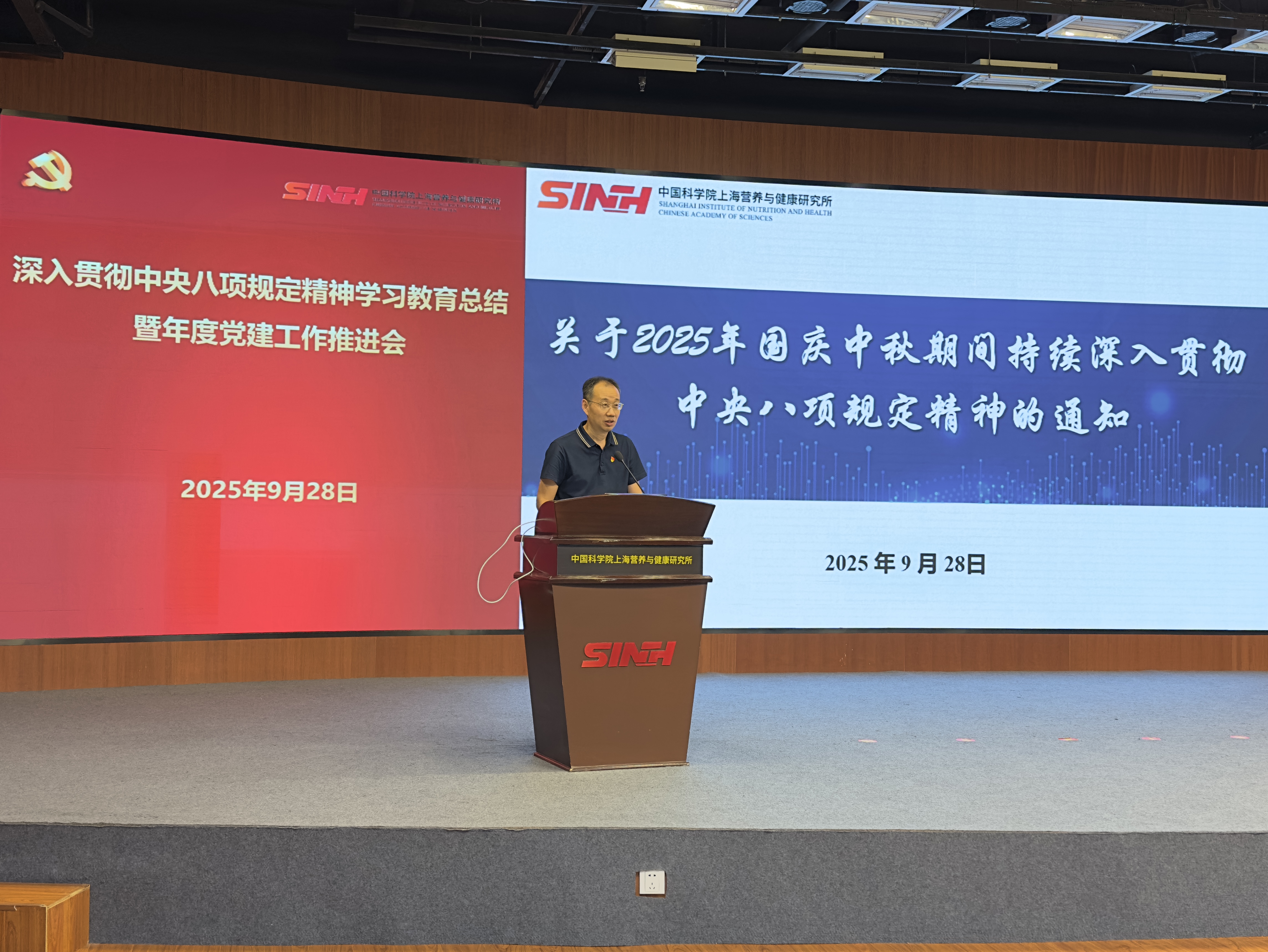 9月28日下午,中國(guó)科學(xué)院上海營(yíng)養(yǎng)與健康研究所組織召開深入貫徹中央八項(xiàng)規(guī)定精神學(xué)習(xí)教育總結(jié)會(huì)暨年度黨建工作推進(jìn)會(huì),研究所“兩委”委員、各黨(總)支部書記、副書記等40余人參加會(huì)議,會(huì)議由紀(jì)委書記曹永主持。