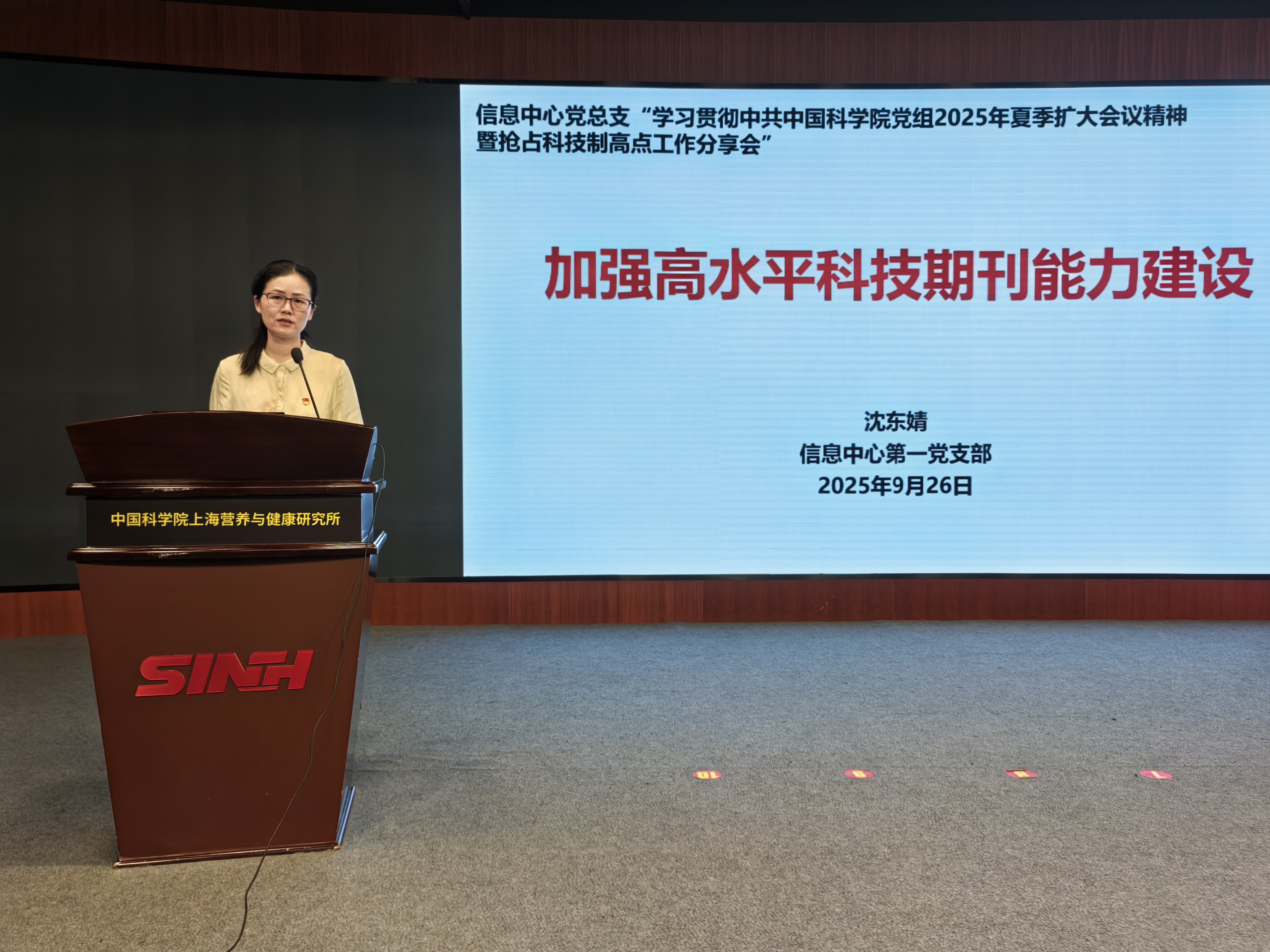 為深入學(xué)習(xí)貫徹中國(guó)科學(xué)院2025年夏季黨組擴(kuò)大會(huì)議精神,切實(shí)推動(dòng)會(huì)議部署轉(zhuǎn)化為具體工作實(shí)踐,9月26日上午,中國(guó)科學(xué)院上海營(yíng)養(yǎng)與健康研究所信息中心黨總支在明德廳召開“貫徹院2025年夏季黨組擴(kuò)大會(huì)議精神暨搶占科技制高點(diǎn)工作”專題學(xué)習(xí)分享會(huì)。信息中心黨總支書記熊燕,總支副書記、副主任陳大明及30余位黨員參加會(huì)議。會(huì)議由黨總支副書記、副主任沈東婧主持,信息中心第二黨支部承辦。