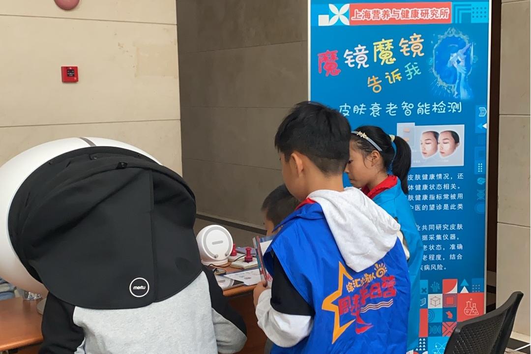 現(xiàn)實(shí)世界里的“魔鏡”也許無(wú)法告訴大家誰(shuí)是世界上最美麗的人,但它可以快速精準(zhǔn)檢測(cè)皮膚衰老狀態(tài),結(jié)合大數(shù)據(jù)分析,評(píng)估個(gè)體衰老程度,為預(yù)測(cè)潛在疾病風(fēng)險(xiǎn)提供參考。其背后的原理是皮膚狀態(tài)可能與多種疾病、精神及身體健康狀態(tài)相關(guān),在醫(yī)學(xué)研究中,各項(xiàng)皮膚健康指標(biāo)常被用于評(píng)估人體健康水平。中國(guó)科學(xué)院營(yíng)養(yǎng)工程實(shí)驗(yàn)室皮膚健康部在科普現(xiàn)場(chǎng)設(shè)置檢測(cè)儀器,其強(qiáng)大的功能吸引了眾多科學(xué)愛(ài)好者在展臺(tái)周?chē)牌痖L(zhǎng)隊(duì)等待檢測(cè)和體驗(yàn)。