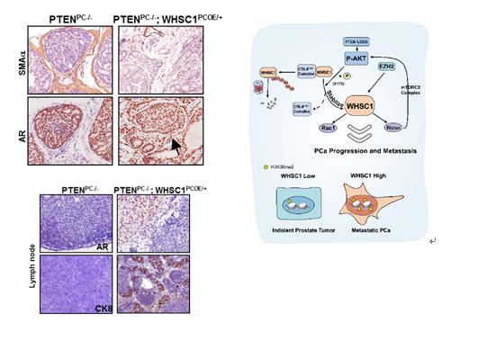 圖:WHSC1促進PTEN缺失惰性前列腺腫瘤形成高轉(zhuǎn)移性前列腺癌及其作用模式