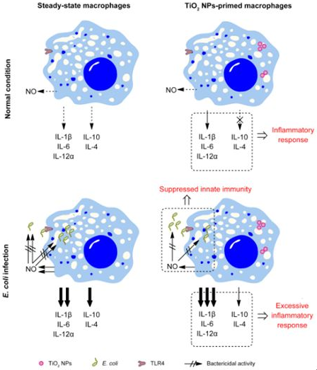 圖.二氧化鈦納米顆粒誘導(dǎo)巨噬細(xì)胞活化模式圖