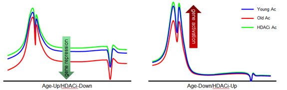 大腦的炎性衰老是衰老相關(guān)的神經(jīng)退行性疾病的一個(gè)主要標(biāo)志。研究人員通過對人和小鼠大腦中H3K27ac和基因表達(dá)數(shù)據(jù)的整合分析,發(fā)現(xiàn)隨衰老上調(diào)和下調(diào)的基因上具有完全不同的H3K27ac修飾模式。盡管H3K27ac在兩類基因的啟動(dòng)子上均有分布,然而富集免疫相關(guān)功能并隨衰老上調(diào)的基因的基因體上卻有著更為廣泛的H3K27ac修飾,并且這些修飾會(huì)隨著衰老逐漸丟失。與啟動(dòng)子區(qū)H3K27ac的轉(zhuǎn)錄激活功能不同,基因體超乙?;种屏搜仔运ダ舷嚓P(guān)基因的過度激活,并且基因體上的H3K27ac水平,可以用來預(yù)測基因在衰老過程中的變化方向。上述研究證實(shí)了H3K27ac在隨衰老上調(diào)或下調(diào)的基因上行使截然相反的調(diào)控功能,并且提出了基因體超乙?;种妻D(zhuǎn)錄的新模式。