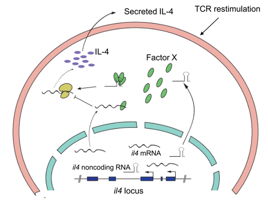 圖:lncRNA IL4nc在Th2細胞中正向調(diào)控IL4蛋白表達