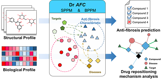 藥物重定位指將已有藥物再利用,將其應(yīng)用于新的疾病。與傳統(tǒng)的藥物研究相比,藥物的重定位具有巨大的優(yōu)勢,其大大縮短藥物研發(fā)周期,降低成本并降低潛在風(fēng)險,現(xiàn)已成為藥物研發(fā)中重要策略之一。然而,如何不斷優(yōu)化藥物重定位方法和模型則成為目前需要攻克的難點。纖維化是許多疾病致病機(jī)制中的關(guān)鍵病理過程,這些涉及到纖維化的疾病具有共同的機(jī)制和治療靶點,具有共同的治療方法和藥物。因此,研究團(tuán)隊開發(fā)了基于化合物抗纖維化特征的藥物重定位預(yù)測算法,在預(yù)測模型中引入抗纖維化的特征,提高重定位的成功率。