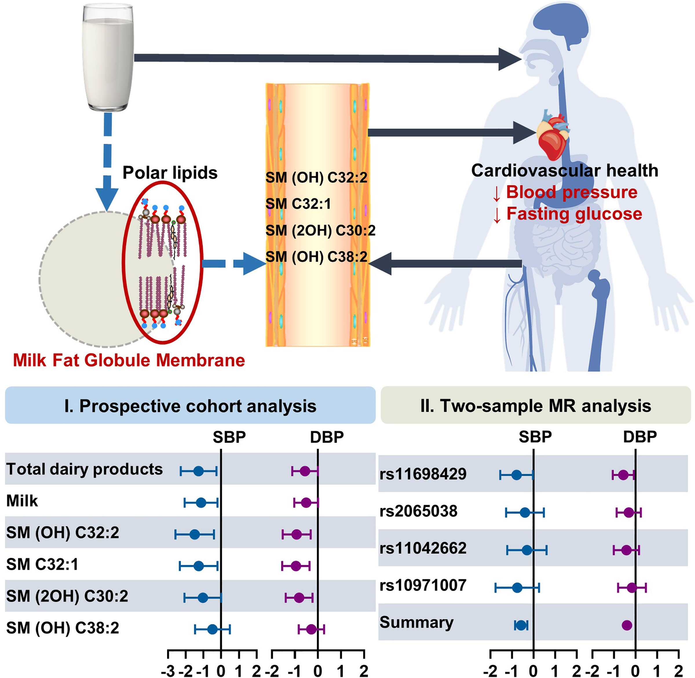 圖. 奶制品攝入的鞘磷脂分子標記物與血壓變化顯著相關(guān),并可能存在因果關(guān)系