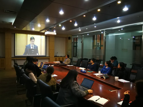 觀看網(wǎng)絡(luò)視頻報(bào)告會(huì)現(xiàn)場