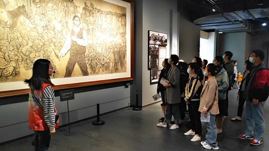 青年列隊(duì)來(lái)到紀(jì)念碑廣場(chǎng),肅立默哀,隨后向烈士紀(jì)念碑敬獻(xiàn)花籃致以深切緬懷和崇高敬意,向英勇獻(xiàn)身于中華民族救亡圖存、人民自由幸福偉大事業(yè)中的革命先烈們鞠躬致敬。在禮兵整齊劃一的動(dòng)作與激蕩人心的《國(guó)際歌》結(jié)束后,青年們進(jìn)入龍華烈士紀(jì)念館參觀學(xué)習(xí)主題為“信仰的召喚”、“使命的執(zhí)著”、“信念的堅(jiān)守”、“民族的脊梁”、“勝利的奮爭(zhēng)”等的多個(gè)展廳。通過(guò)千余件文物和大量照片、圖片,輔以絲毯壁畫(huà)、鍛銅浮雕等陳列品,以及幻影成像、激光演示場(chǎng)景等數(shù)字化影像技術(shù),了解到多位革命先烈的光輝事跡。顧正紅、尹景伊、何秉彝、陳虞清、劉華、瞿秋白等五卅運(yùn)動(dòng)革命烈士為理想慷慨赴死拉開(kāi)第一次大革命運(yùn)動(dòng)序幕,九十年前林育南等龍華二十四烈士堅(jiān)守信念從容就義,一幕幕通過(guò)史實(shí)的復(fù)原展示與虛擬的場(chǎng)景沉浸讓黨員團(tuán)們熱血澎湃、身臨其境,青年們深切體會(huì)了為何“壯士身亡志未窮”,為何“墻外桃花”和“墻里血”能夠“一般鮮艷一般紅”。