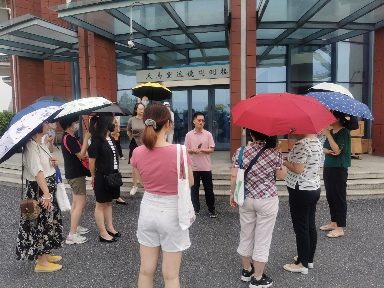 黨員們抵達(dá)天馬望遠(yuǎn)鏡觀測基地后,映入眼簾的就是一座國內(nèi)領(lǐng)先、亞洲最大、國際先進(jìn)的65米口徑全方位可轉(zhuǎn)動大型射電望遠(yuǎn)鏡系統(tǒng),總體性能在國際同類望遠(yuǎn)鏡中名列前茅。黨員們詳細(xì)了解了天馬望遠(yuǎn)鏡的建設(shè)歷程、結(jié)構(gòu)與技術(shù)指標(biāo)、工作原理,及其在探月工程、火星探測、天文學(xué)研究中發(fā)揮的重要作用。隨后,團(tuán)隊(duì)奔赴我國近代史上第一座天文臺——擁有百多年歷史的上海佘山天文臺,參觀天文博物館與“鎮(zhèn)臺之寶”——有“遠(yuǎn)東第一鏡”之稱的40厘米口徑雙筒折射式望遠(yuǎn)鏡。通過工作人員耐心細(xì)致的講解,大家了解到作為我國近代天文事業(yè)起點(diǎn)之一的佘山天文臺歷史及其帶來的一系列科研成果與重要性,也體悟了在望遠(yuǎn)鏡修繕過程中工程技術(shù)團(tuán)隊(duì)所展現(xiàn)的艱苦奮斗、刻苦攻關(guān)精神?;顒又校h員們還前往廣富林文化遺址探尋傳統(tǒng)文化,增強(qiáng)民族自信與文化認(rèn)同。