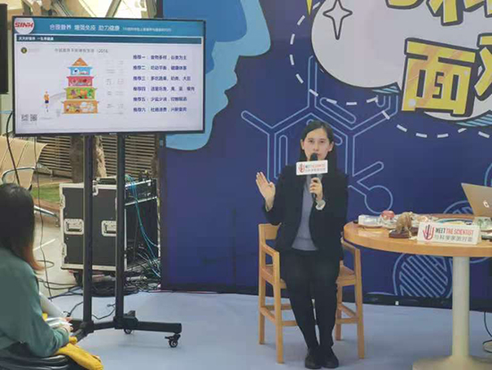 在科學(xué)集市上,為公眾準(zhǔn)備了主題展板與問卷、膳食寶塔貼畫和膳食模型展示等三道營(yíng)養(yǎng)“大餐”。