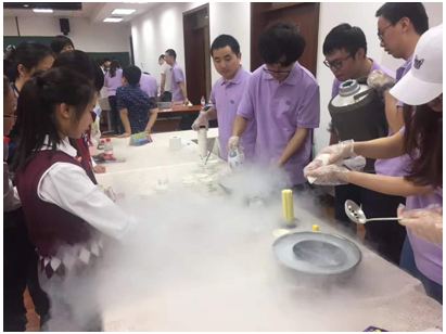 學(xué)生們在做液氮冰淇淋