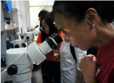 2017年5月20日,市民走進(jìn)中科院上海生命科學(xué)研究員的實(shí)驗(yàn)室,使用顯微鏡。