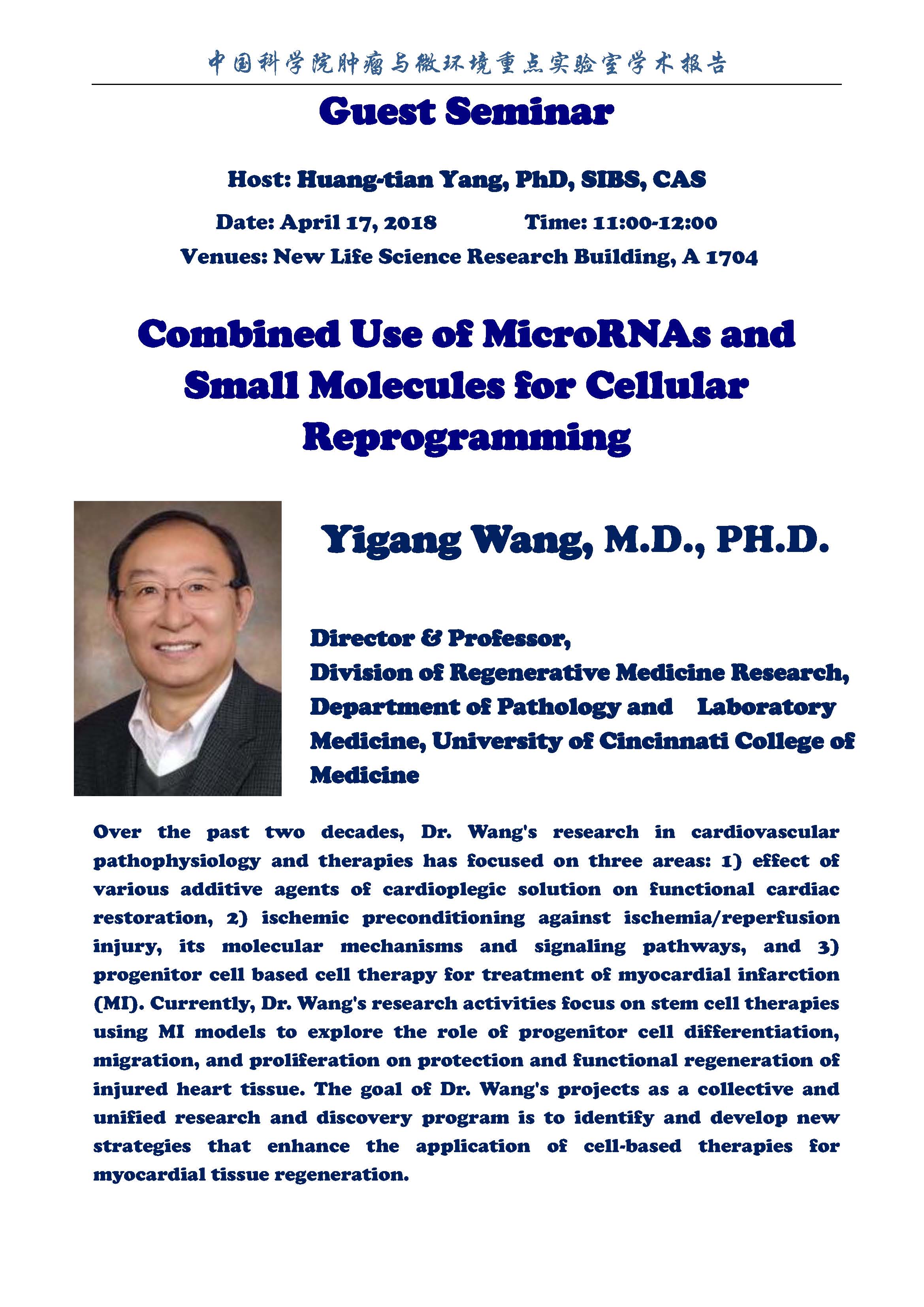 中科院腫瘤與微環(huán)境重點(diǎn)實(shí)驗(yàn)室學(xué)術(shù)報(bào)告:Combined Use of MicroRNAs and Small Molecules for Cellular Reprogramming