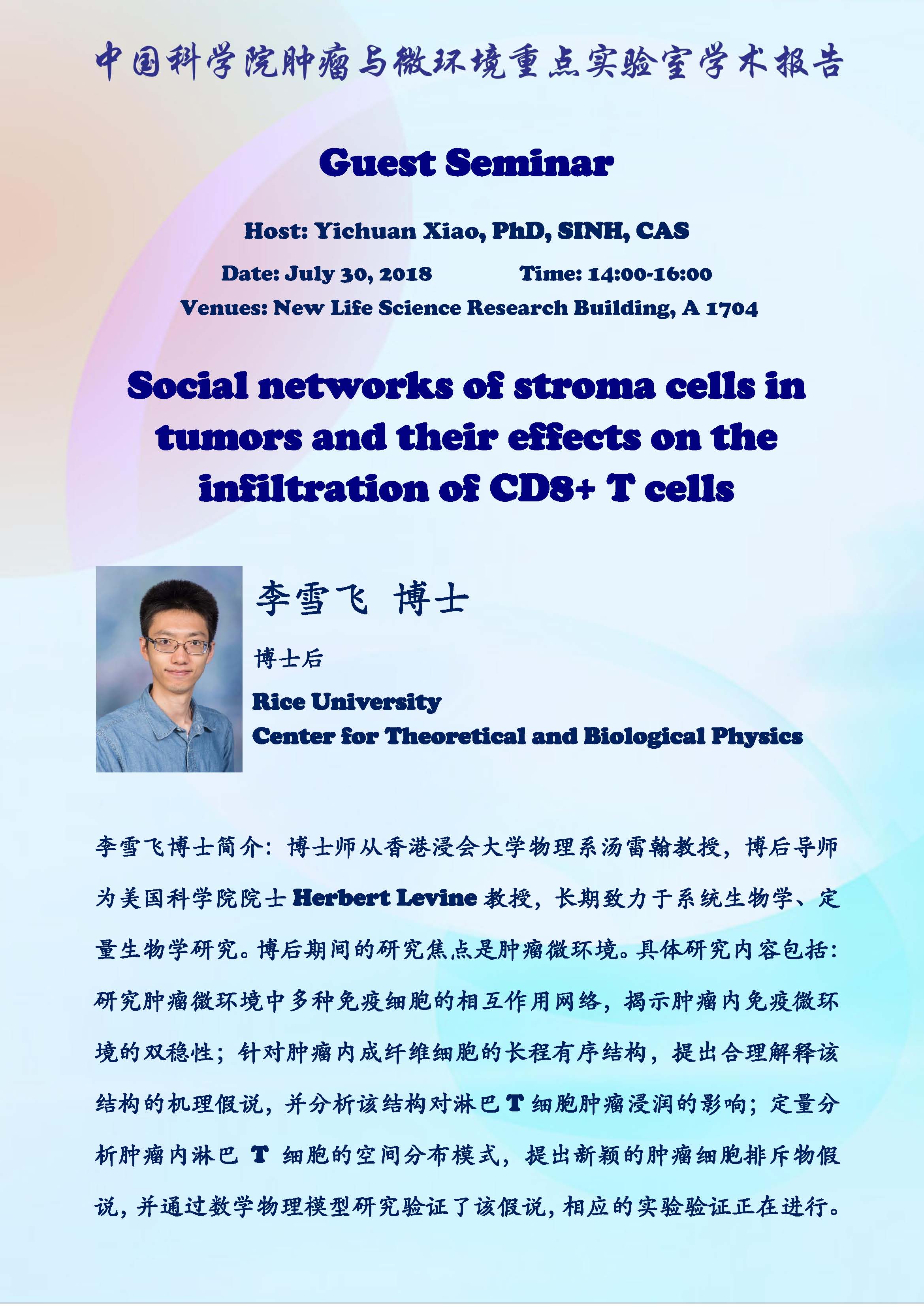 中科院腫瘤與微環(huán)境重點(diǎn)實(shí)驗(yàn)室學(xué)術(shù)報(bào)告:Social networks of stroma cells in tumors and their effects on the infiltration of CD8+ T cells