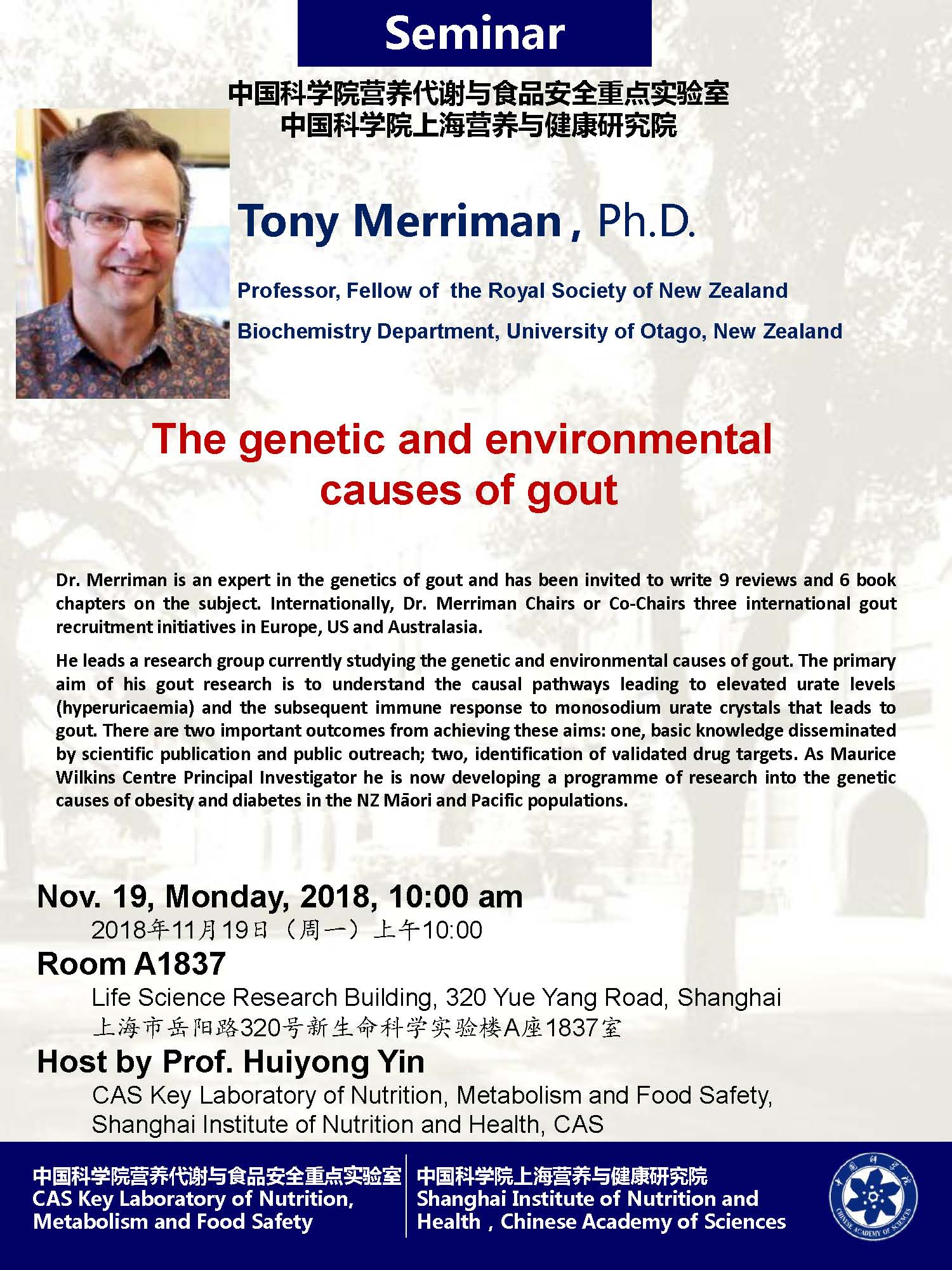 中科院營(yíng)養(yǎng)代謝與食品安全重點(diǎn)實(shí)驗(yàn)室學(xué)術(shù)報(bào)告:The genetic and environmental causes of gout