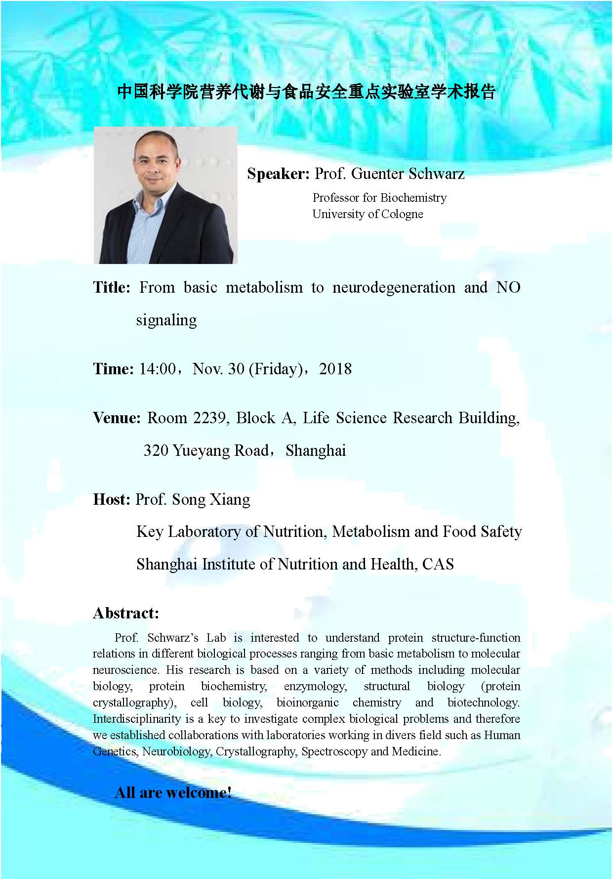 中科院營養(yǎng)代謝與食品安全重點(diǎn)實驗室學(xué)術(shù)報告:From basic metabolism to neurodegeneration and NO signaling
