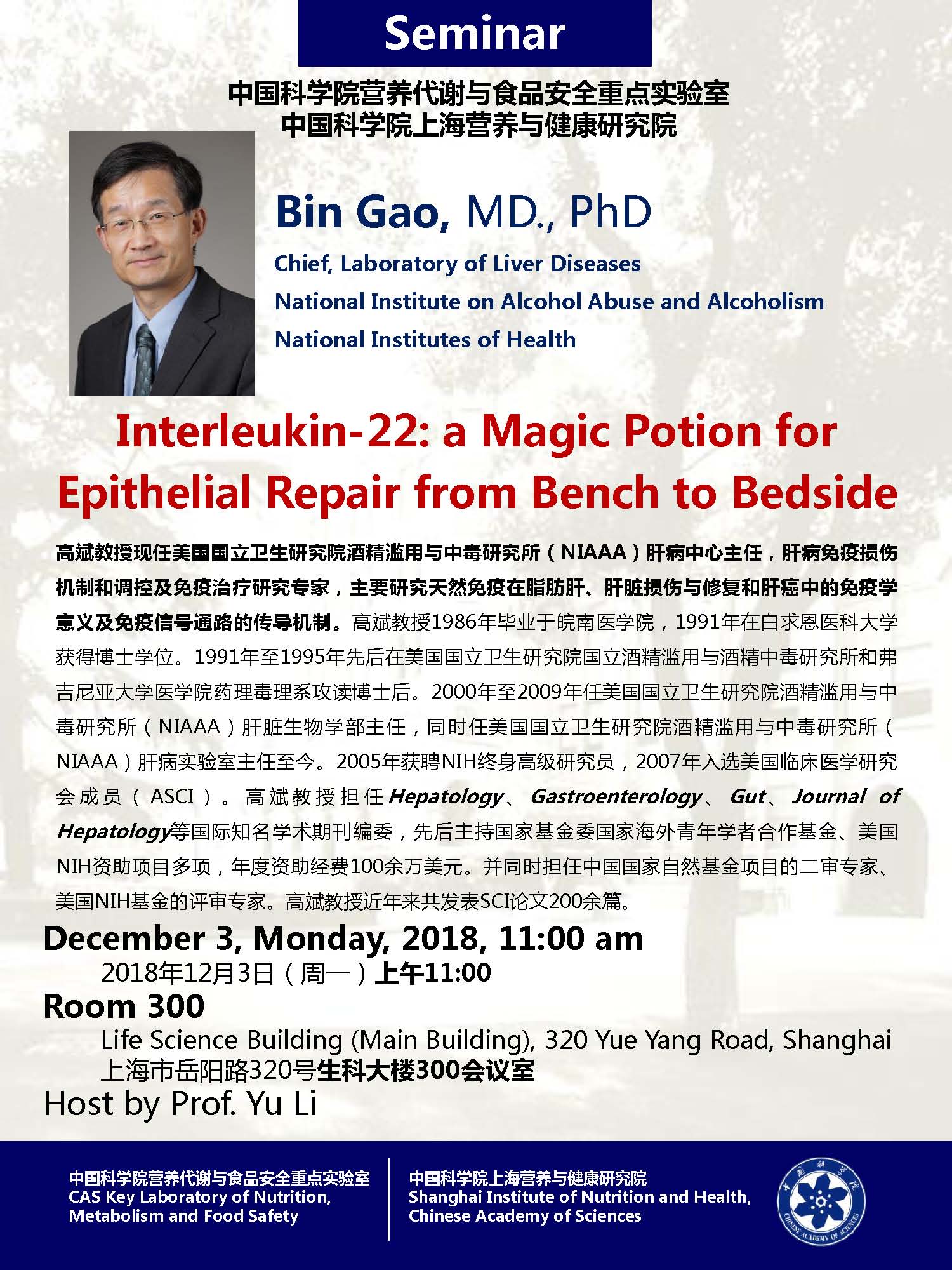中科院營養(yǎng)代謝與食品安全重點(diǎn)實(shí)驗(yàn)室學(xué)術(shù)報(bào)告:Interleukin-22: a Magic Potion for Epithelial Repair from Bench to Bedside