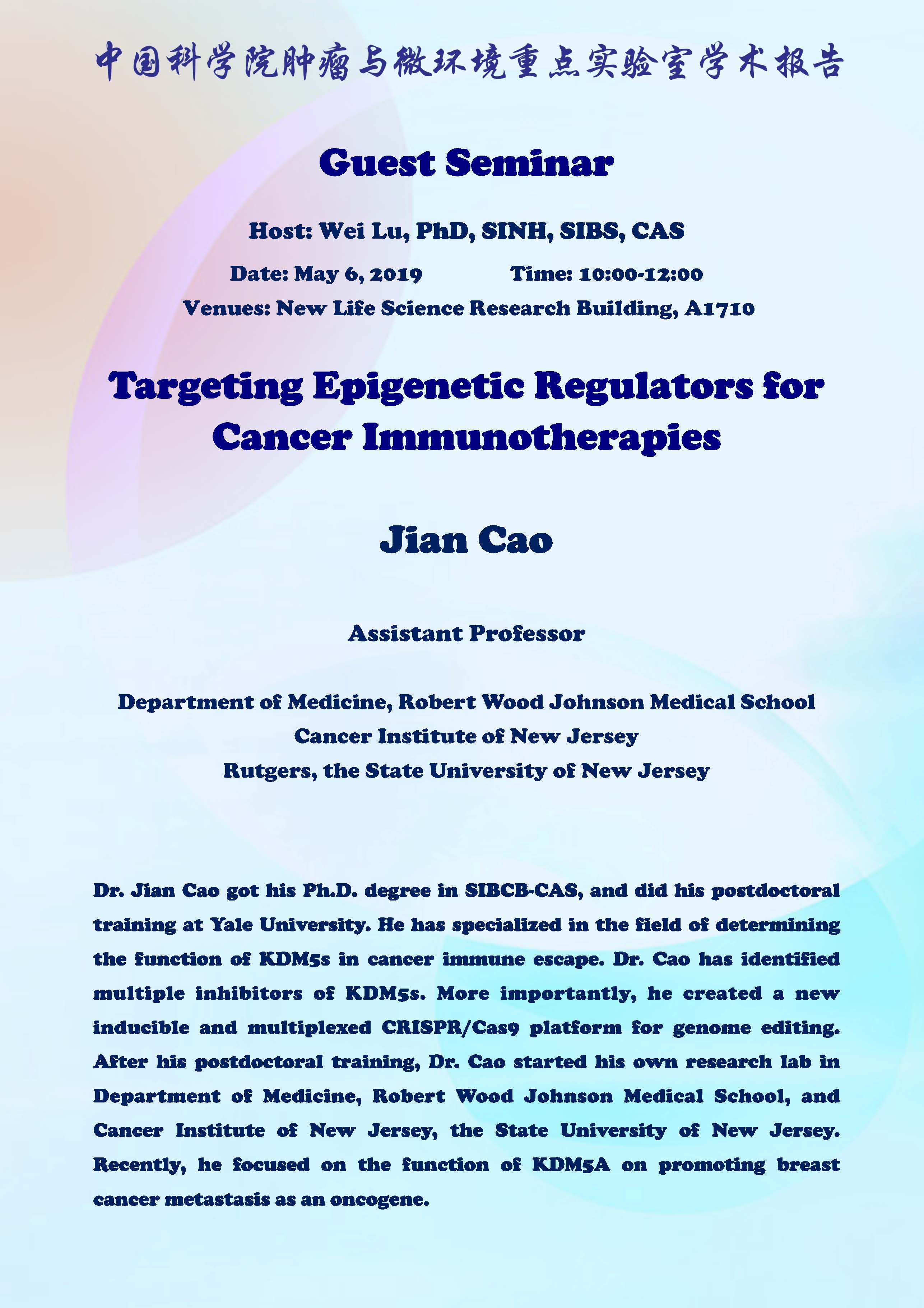 中科院腫瘤與微環(huán)境重點實驗室學(xué)術(shù)報告:Targeting Epigenetic Regulators for Cancer Immunotherapies
