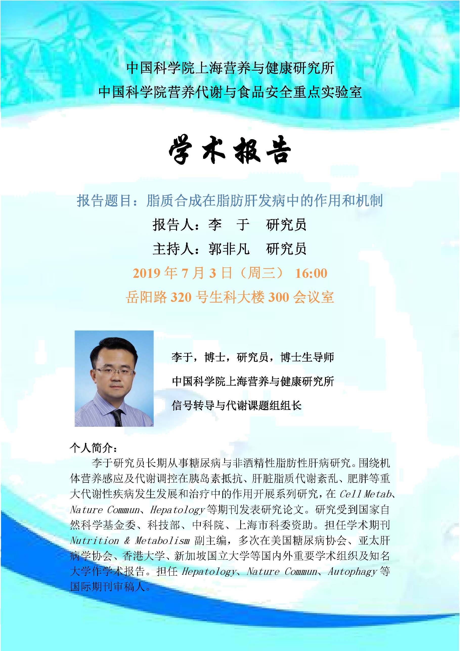 中科院上海營養(yǎng)與健康研究所固定學(xué)術(shù)報告:脂質(zhì)合成在脂肪肝發(fā)病中的作用和機(jī)制
