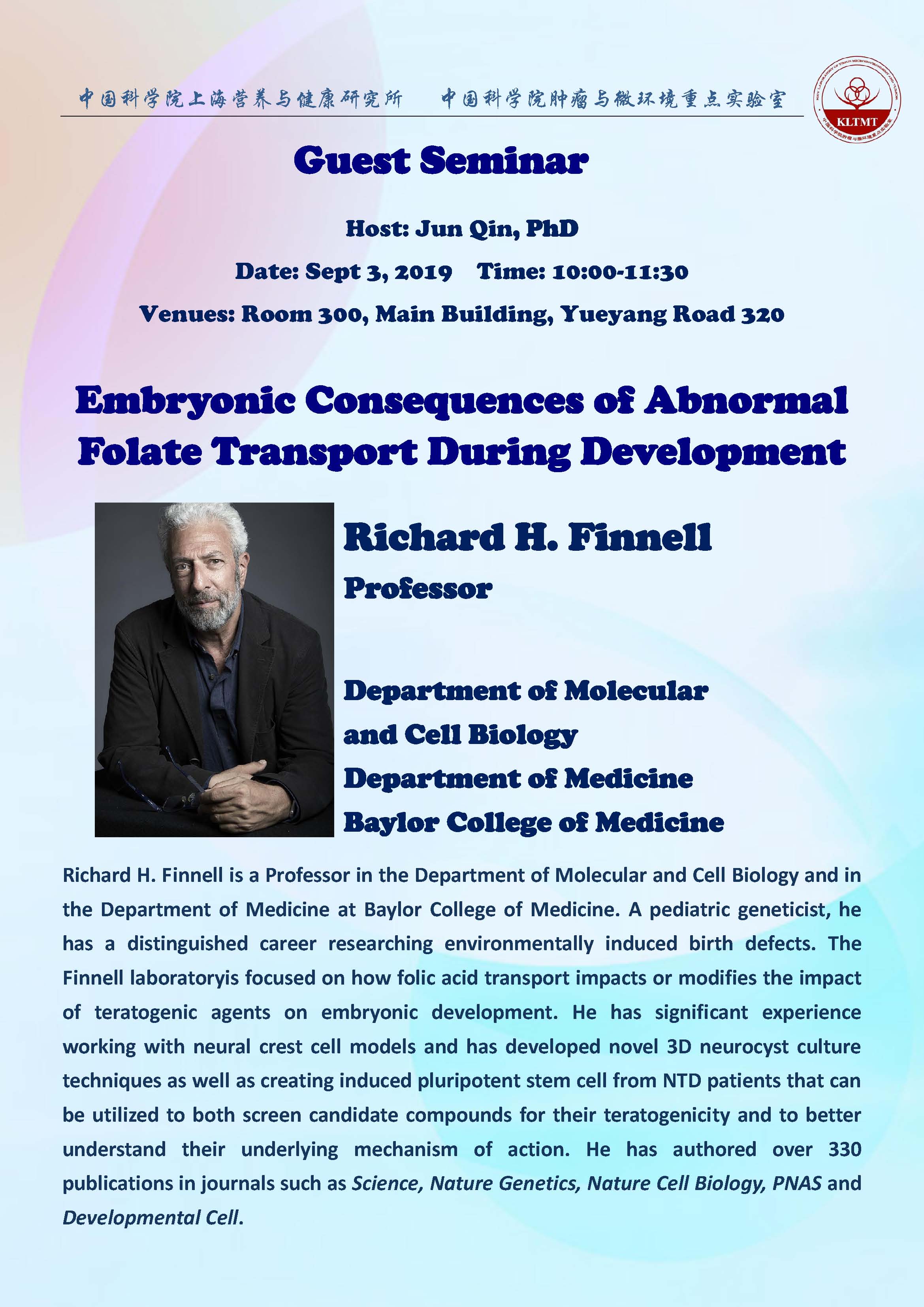 中科院腫瘤與微環(huán)境重點實驗室學(xué)術(shù)報告:Embryonic Consequences of Abnormal Folate Transport During Development