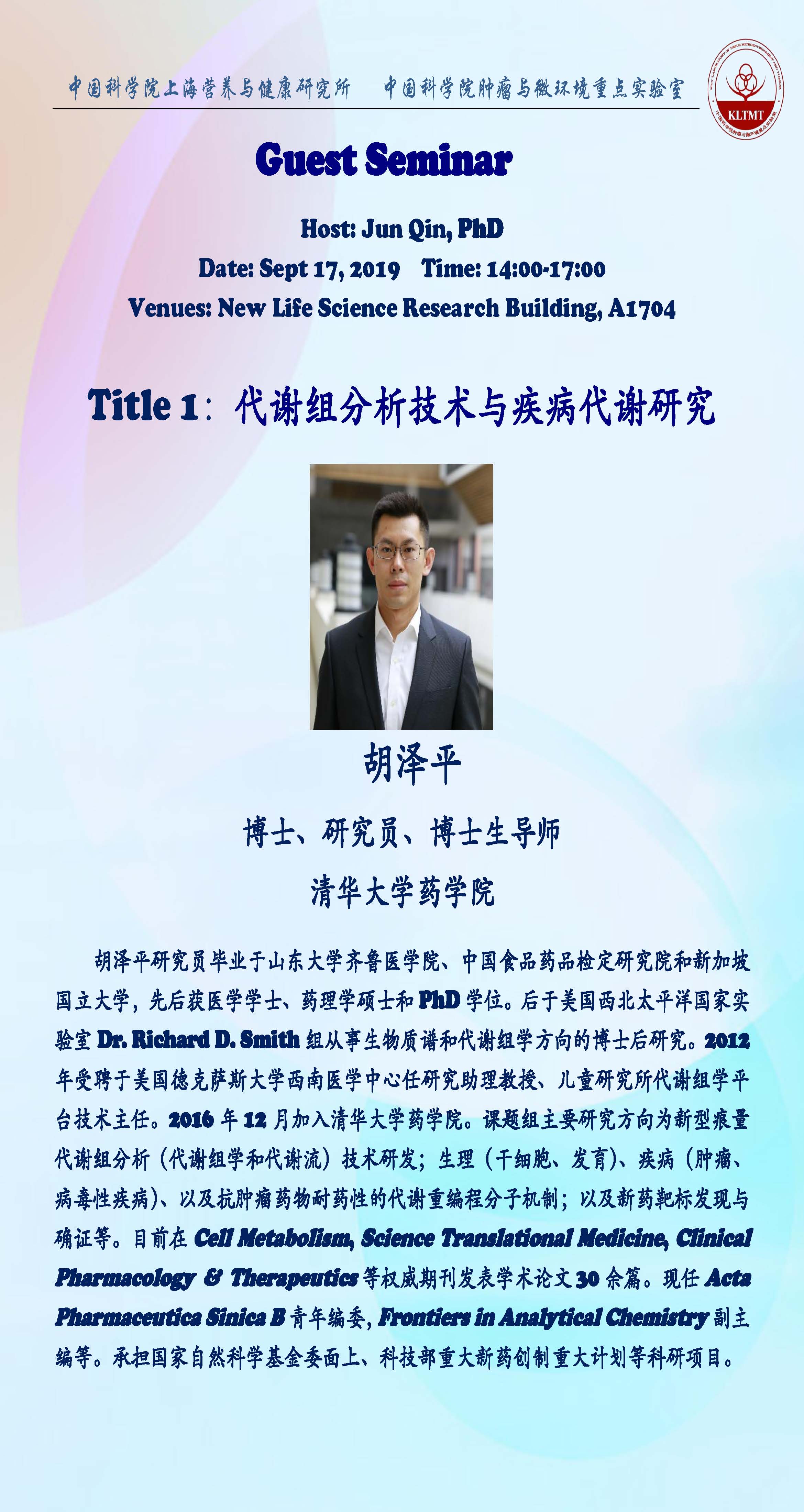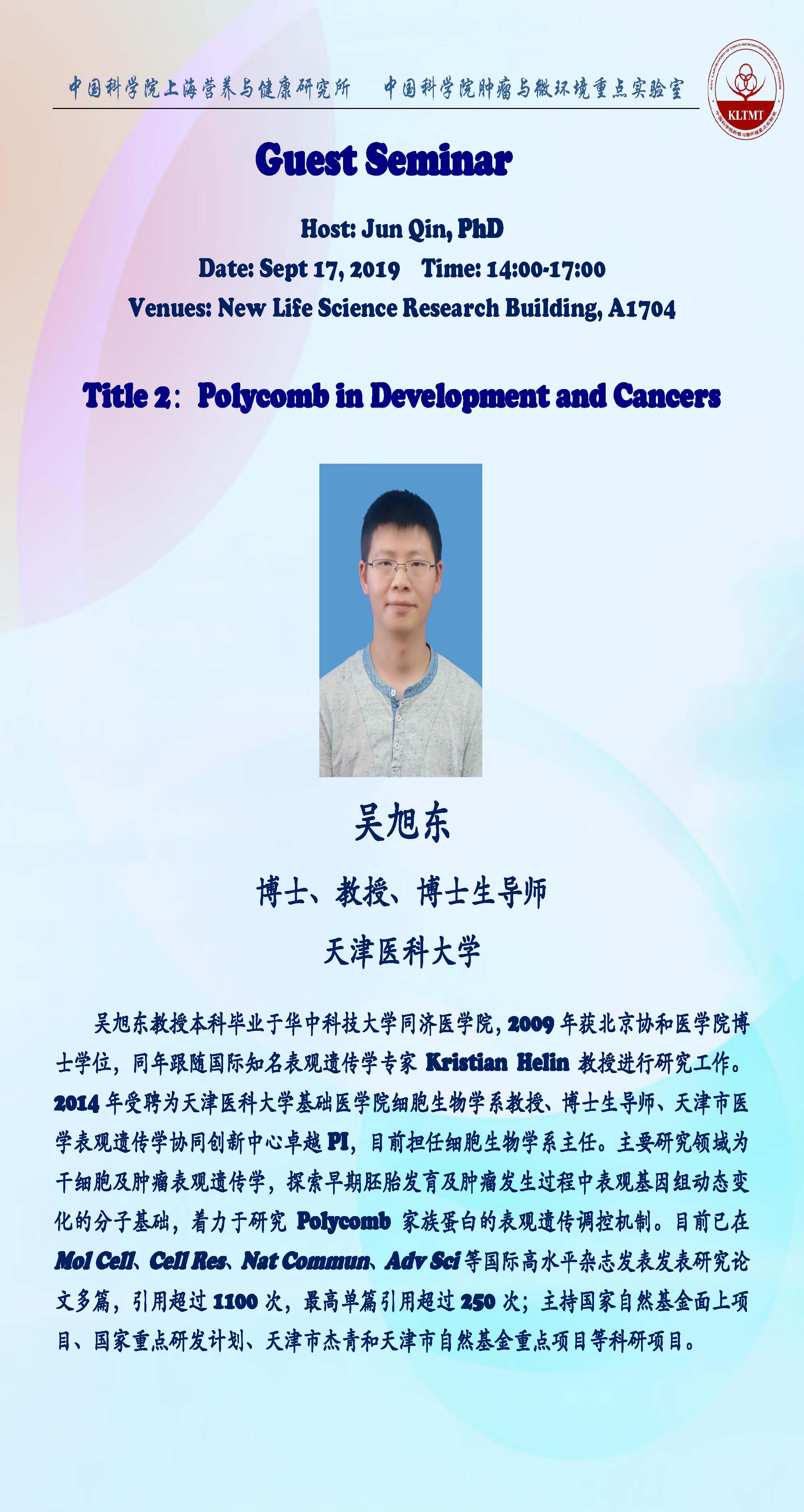 中科院腫瘤與微環(huán)境重點(diǎn)實(shí)驗(yàn)室學(xué)術(shù)報(bào)告:代謝組分析技術(shù)與疾病代謝研究 & Polycomb in Development and Cancers