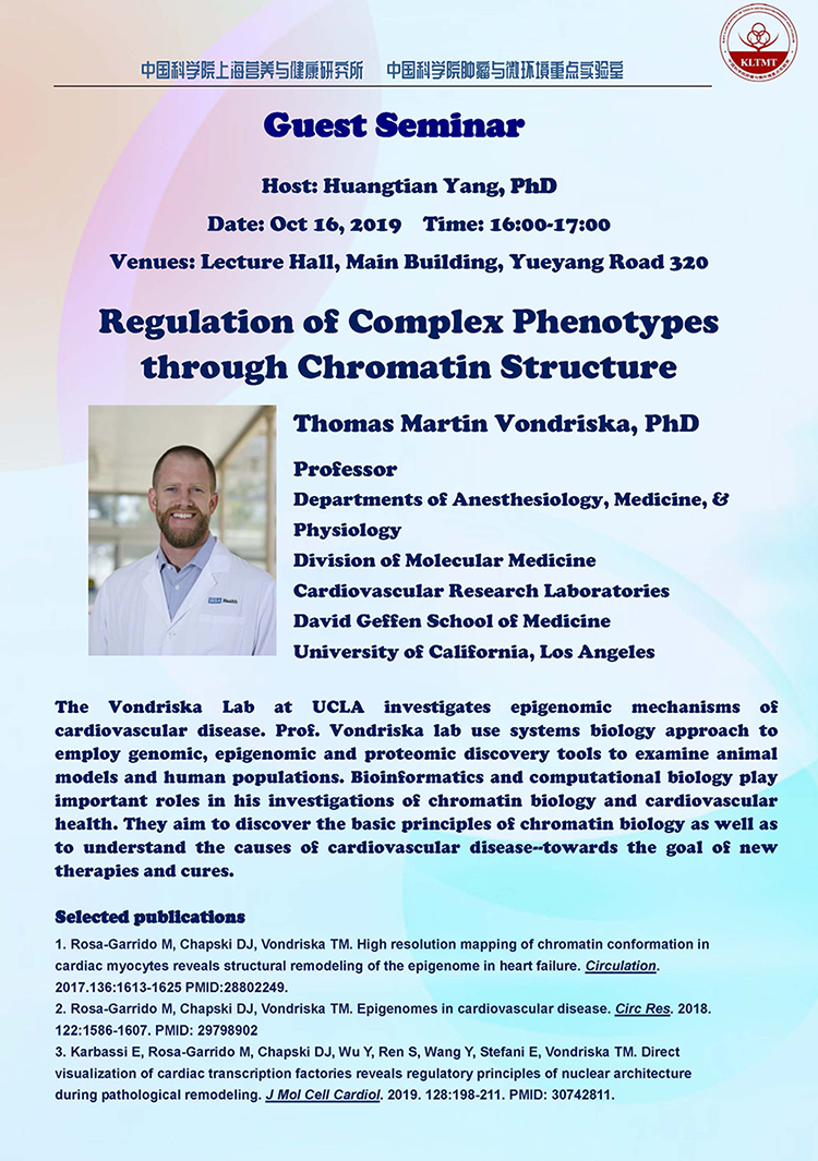 中科院上海營養(yǎng)與健康研究所固定學(xué)術(shù)報(bào)告:Regulation of Complex Phenotypes through Chromatin Structure