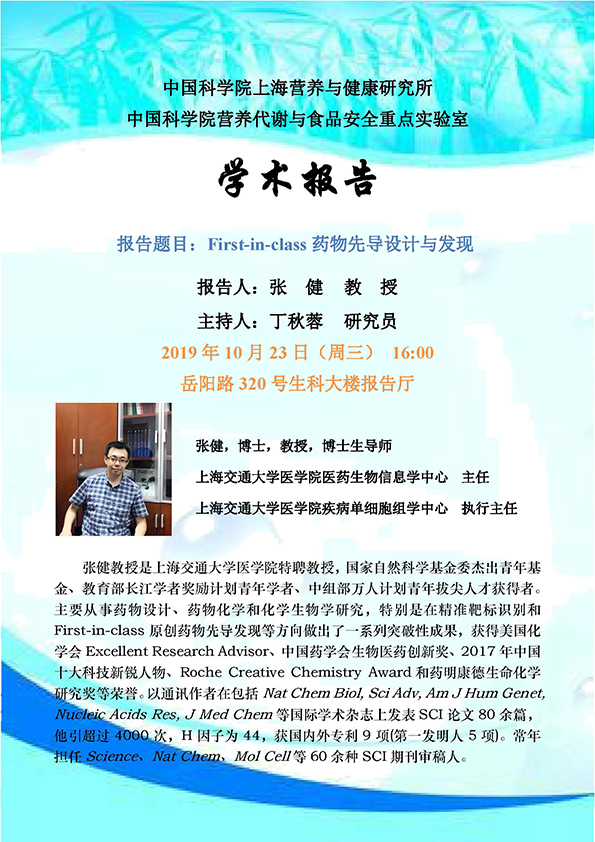 中科院上海營養(yǎng)與健康研究所固定學術報告:First-in-class藥物先導設計與發(fā)現