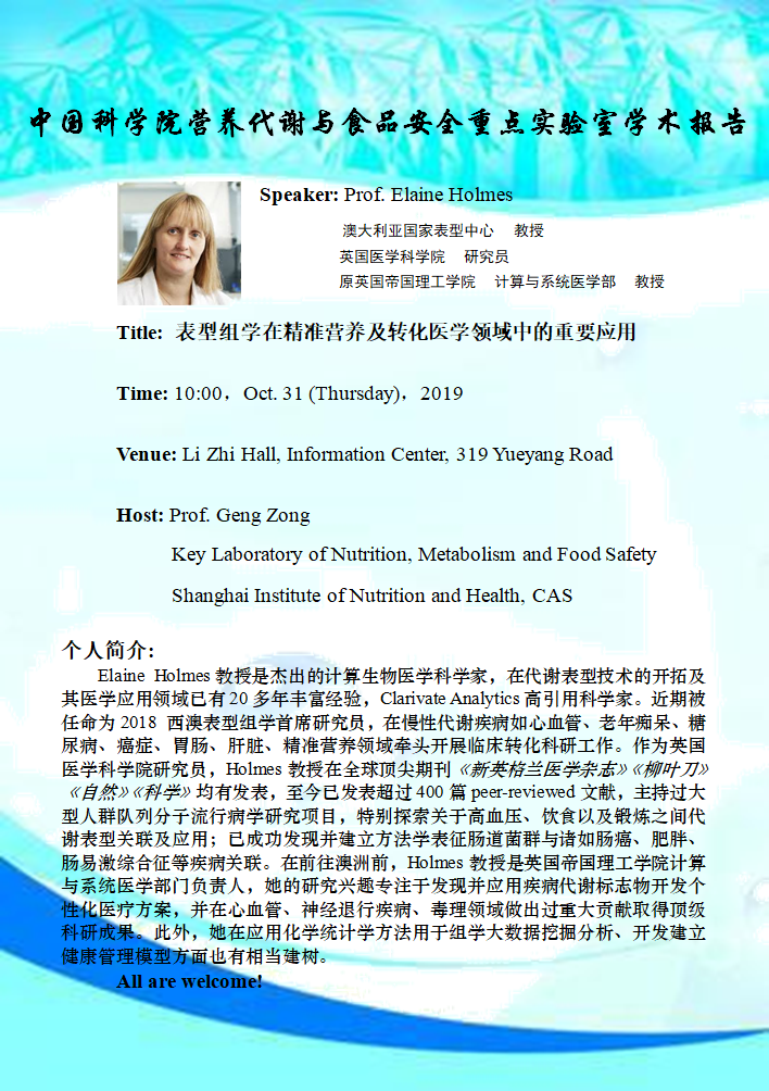 中國科學(xué)院營養(yǎng)代謝與食品安全重點實驗室學(xué)術(shù)報告:表型組學(xué)在精準(zhǔn)營養(yǎng)及轉(zhuǎn)化醫(yī)學(xué)領(lǐng)域中的重要應(yīng)用
