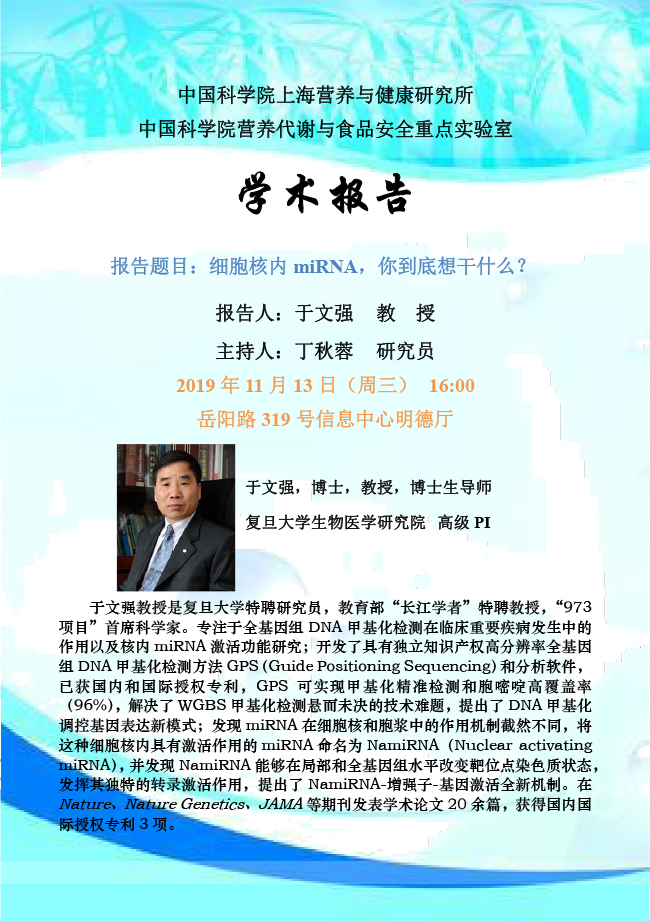 中科院上海營養(yǎng)與健康研究所固定學(xué)術(shù)報告:細(xì)胞核內(nèi)miRNA,你到底想干什么?