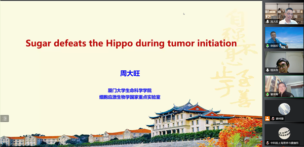 5月11日晚,廈門大學(xué)副校長周大旺教授應(yīng)邀做客“SINH學(xué)術(shù)云聚會”,作“Sugar defeats the Hippo during liver tumor initiation”學(xué)術(shù)報告。報告會由副所長胡國宏研究員主持。黨委書記、副所長瞿榮輝及師生員工220余人線上聆聽了報告。