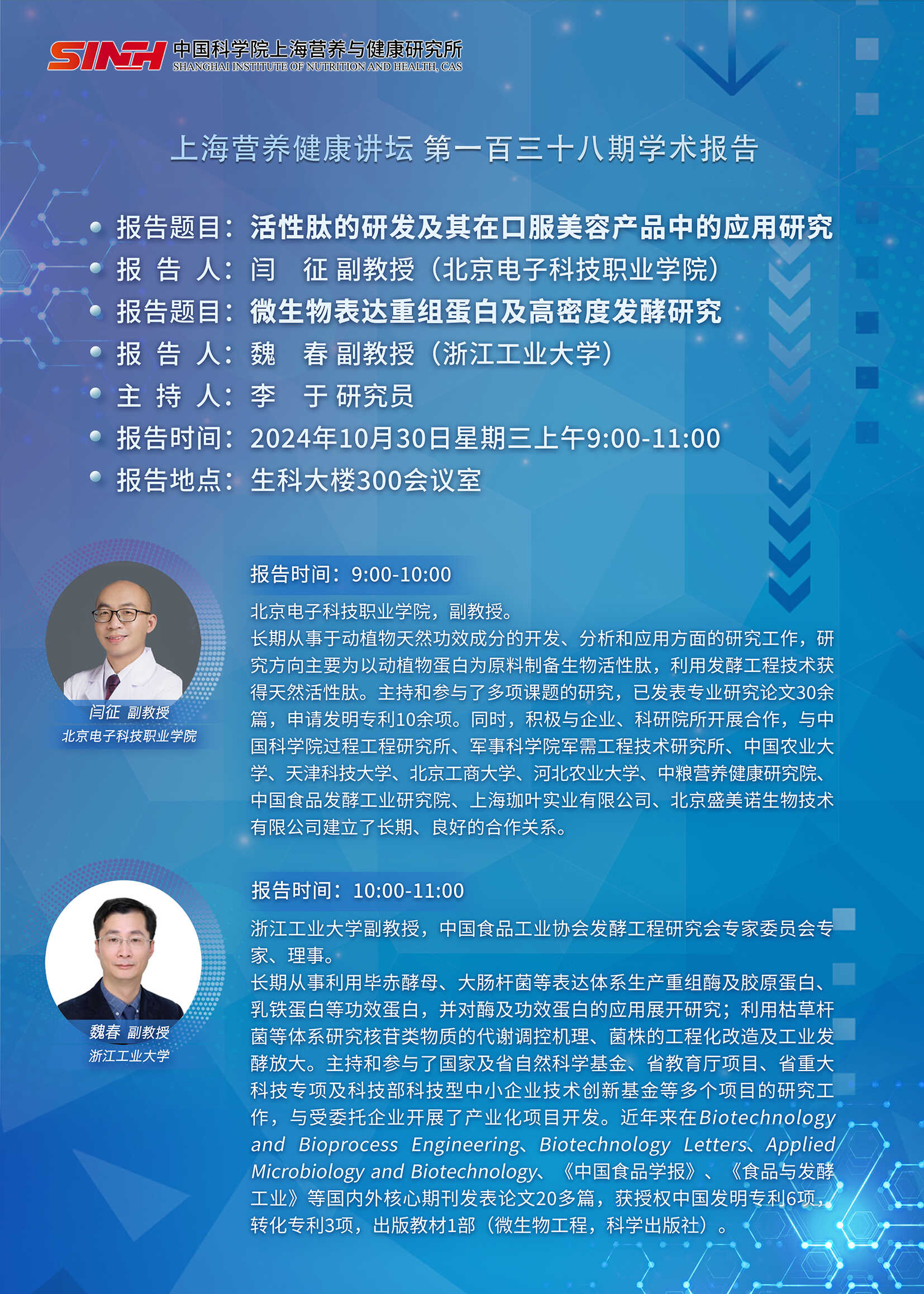 上海營養(yǎng)健康講壇第一百三十八期學術報告