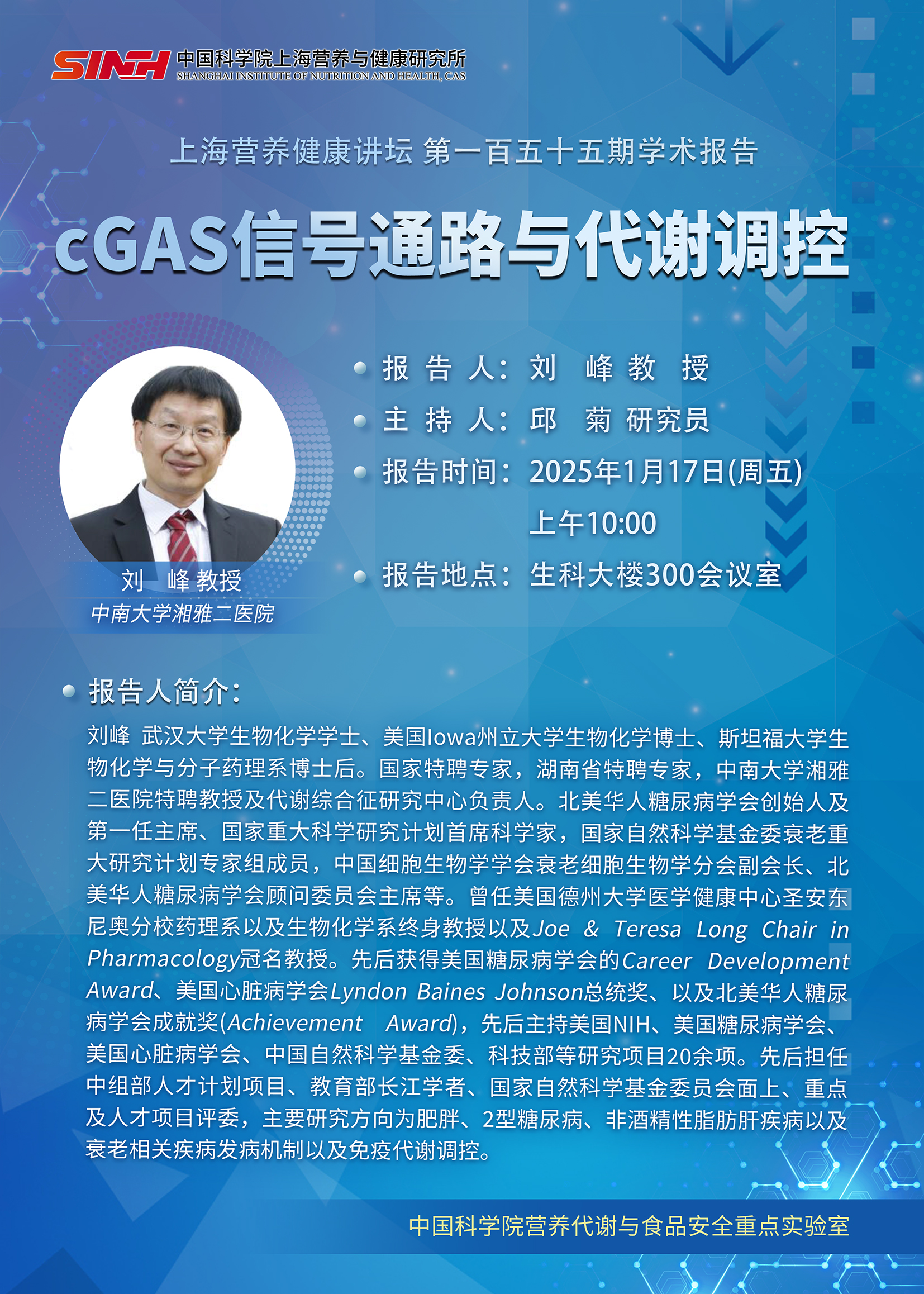1月17日|cGAS信號(hào)通路與代謝調(diào)控-上海營養(yǎng)健康講壇