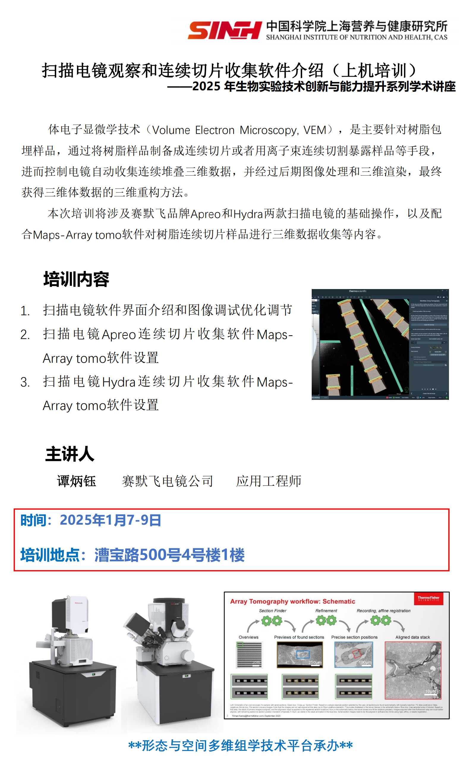 掃描電鏡觀察和連續(xù)切片收集軟件介紹(上機培訓)|2025年生物實驗技術創(chuàng)新與能力提升系列學術講座