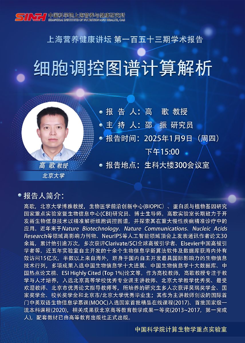 1月9日|細胞調控圖譜計算解析-上海營養(yǎng)健康講壇