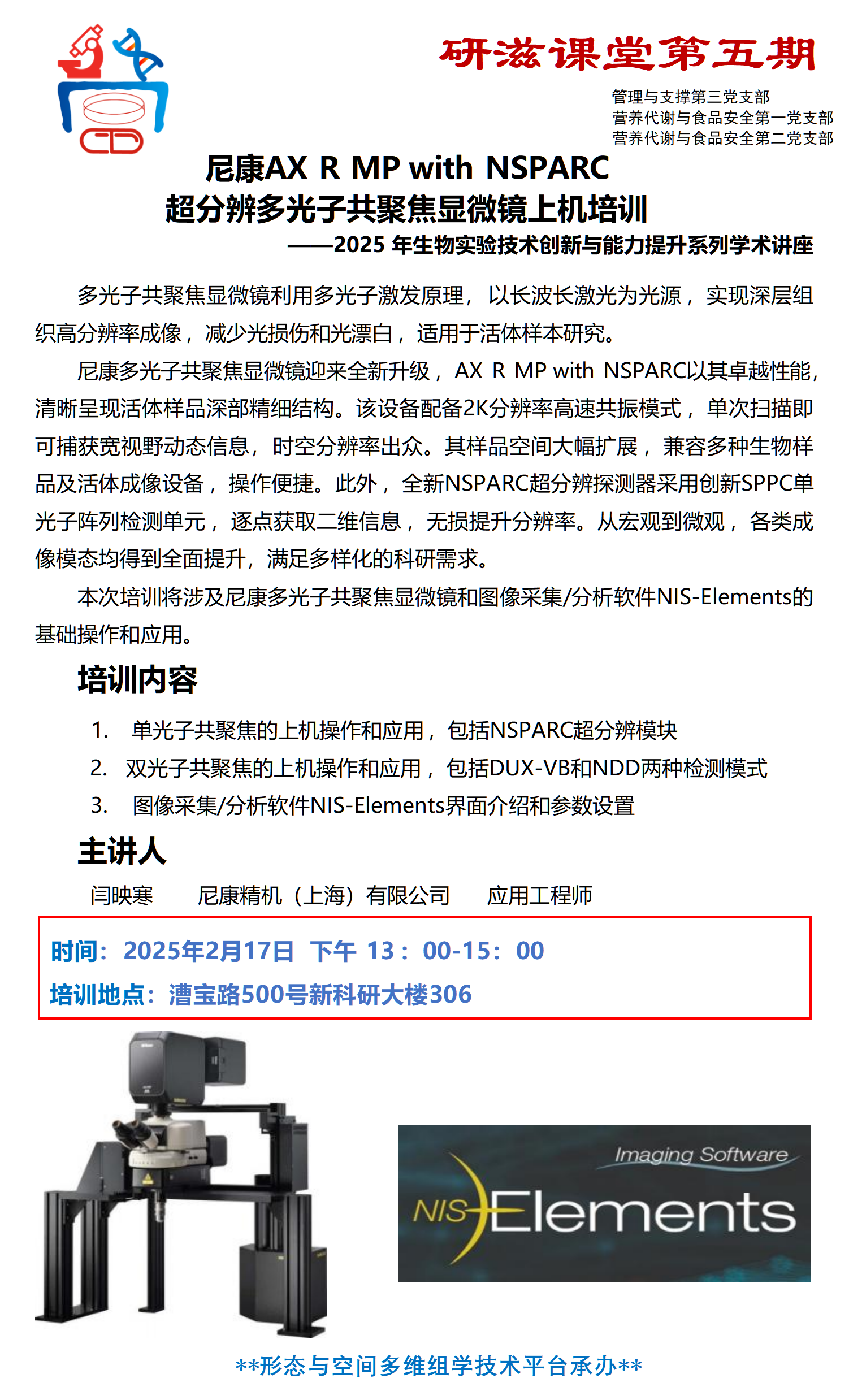 2月17日|尼康A(chǔ)X R MP with NSPARC 超分辨多光子共聚焦顯微鏡上機(jī)培訓(xùn)-研滋課堂
