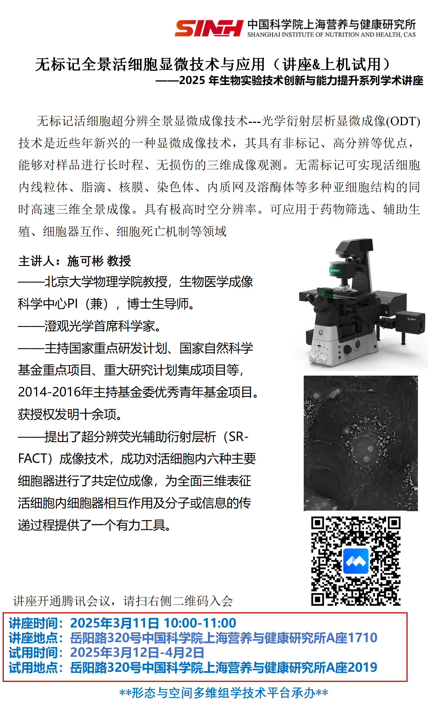 3月11日|無(wú)標(biāo)記全景活細(xì)胞顯微技術(shù)與應(yīng)用(講座&上機(jī)試用)-2025年生物實(shí)驗(yàn)技術(shù)創(chuàng)新與能力提升系列學(xué)術(shù)講座