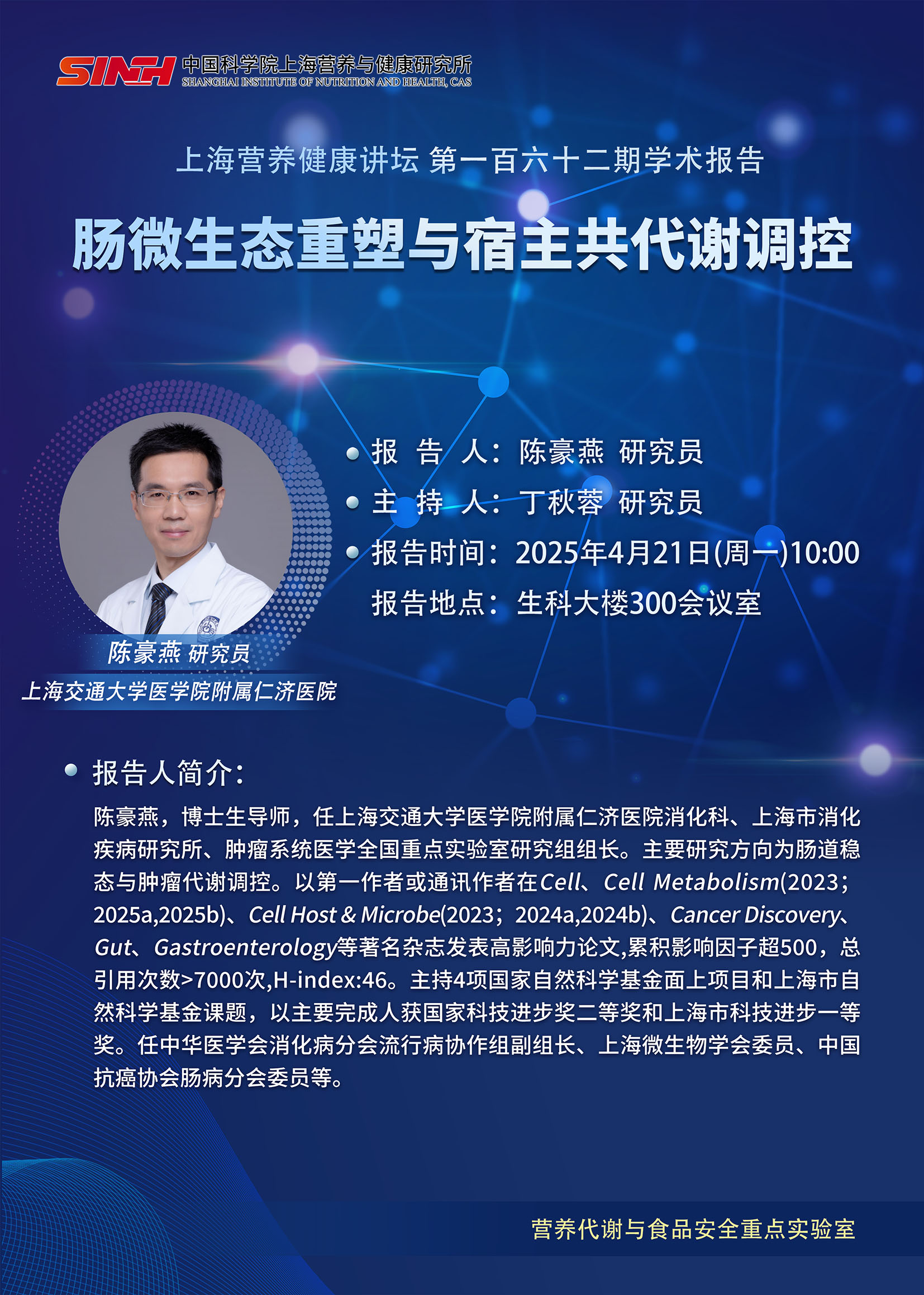 4月21日|腸微生態(tài)重塑與宿主共代謝調(diào)控-上海營養(yǎng)健康講壇