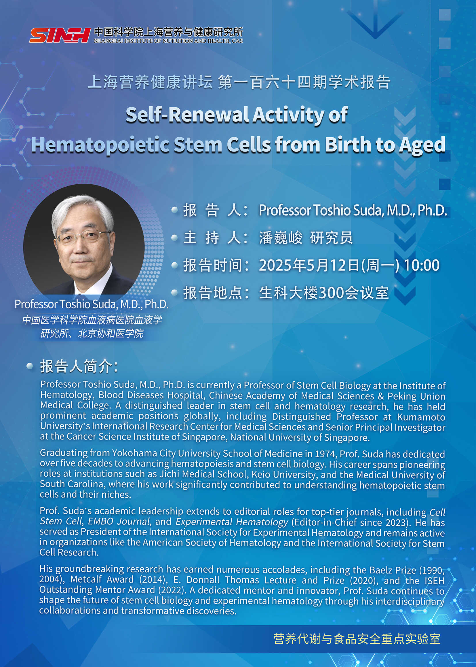 5月12日|Self-Renewal Activity of Hematopoietic Stem Cells from Birth to Aged-上海營養(yǎng)健康講壇