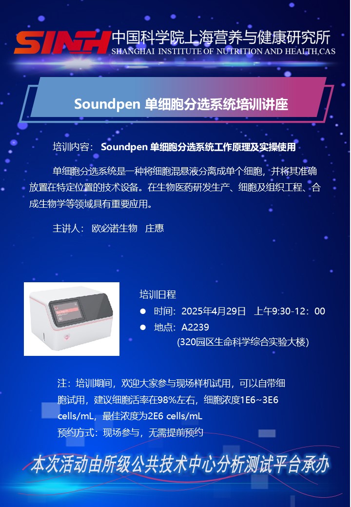 4月29日|Soundpen單細胞分選系統(tǒng)培訓講座