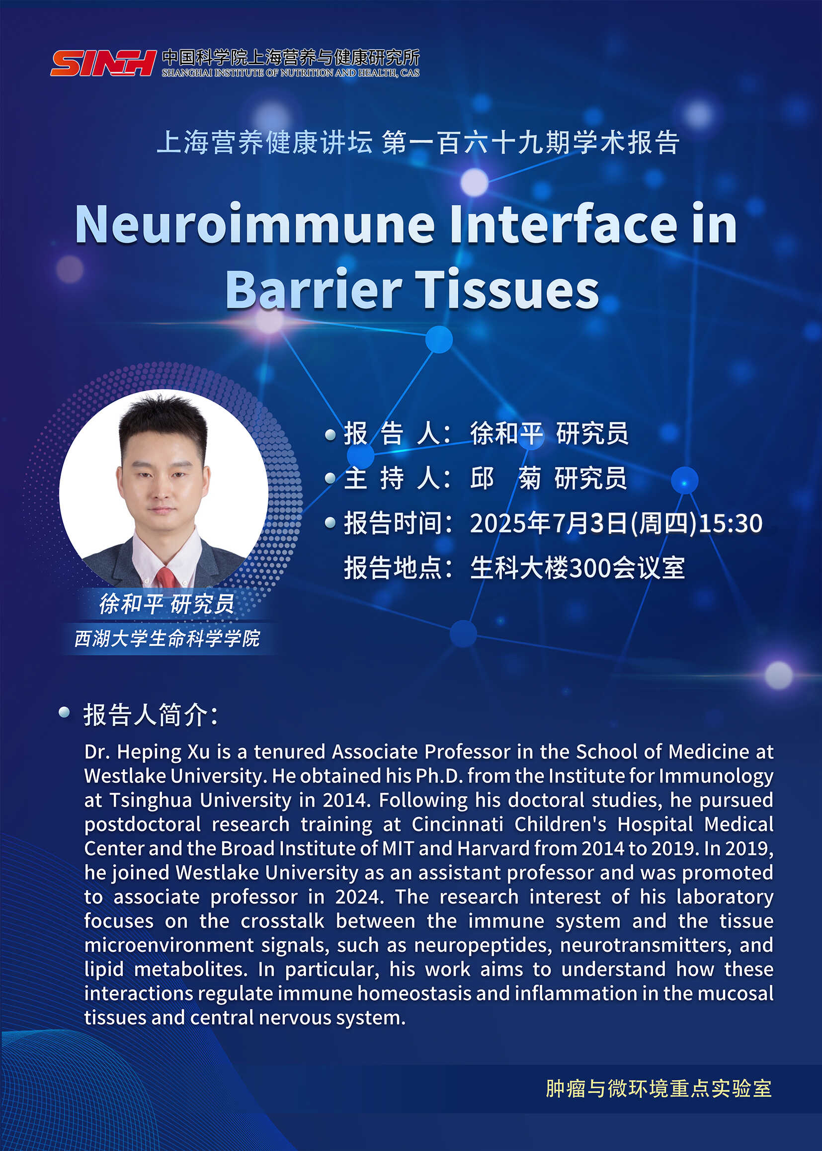 7月3日|Neuroimmune Interface in Barrier Tissues-上海營養(yǎng)健康講壇