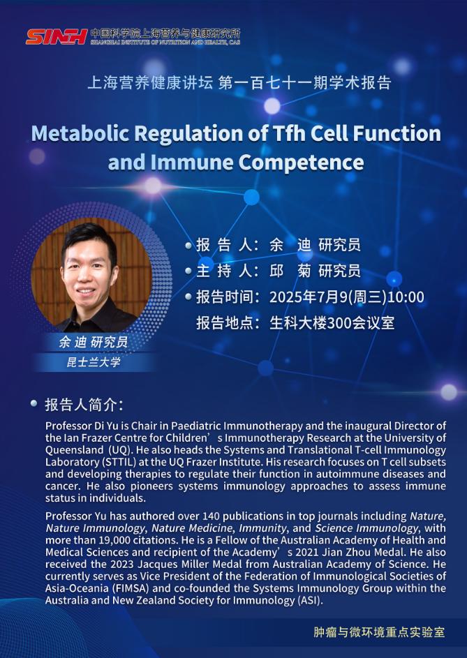7月9日|Metabolic Regulation of?Tfh Cell Function and Immune Competence-上海營(yíng)養(yǎng)健康講壇