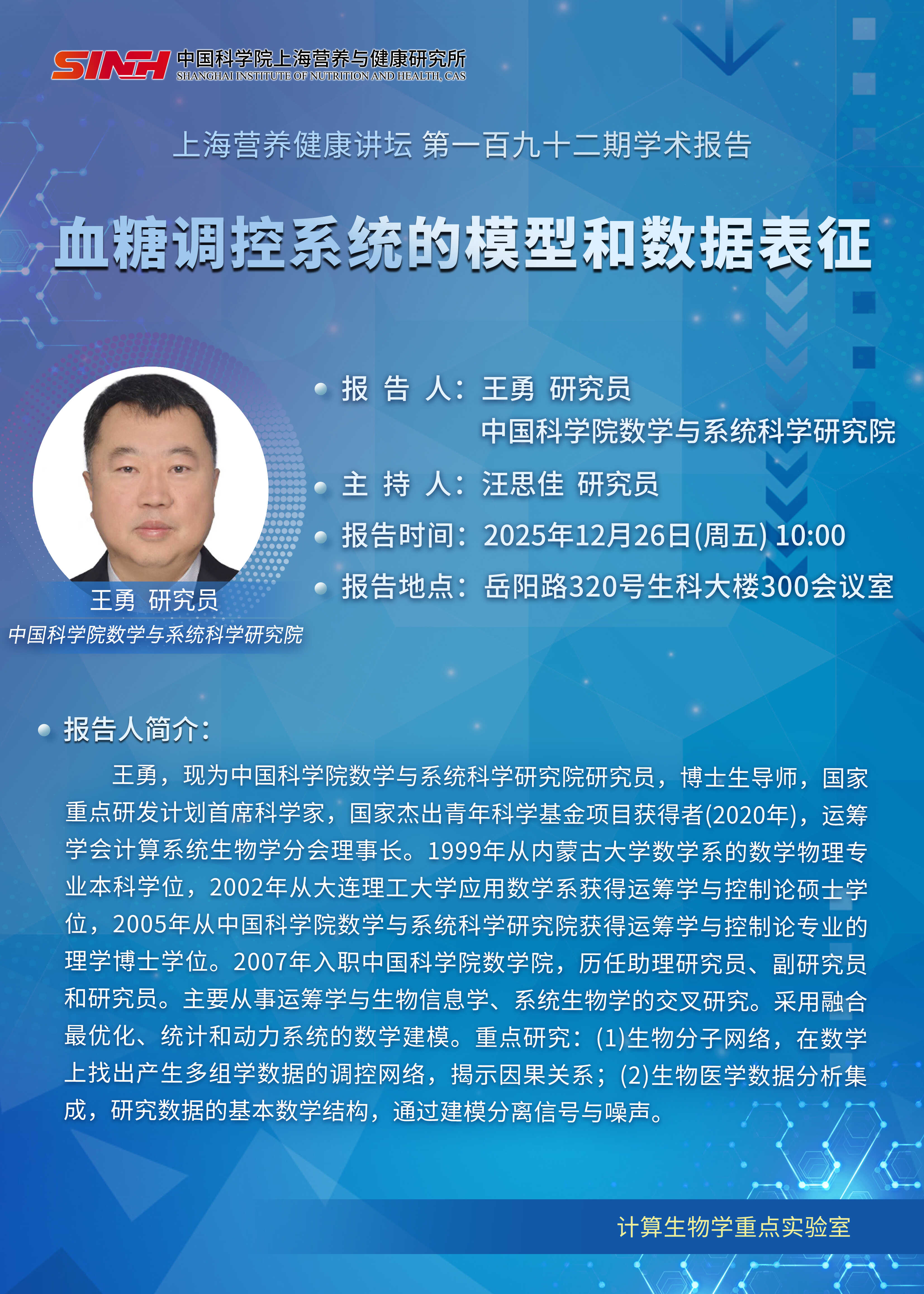 12月26日|血糖調(diào)控系統(tǒng)的模型和數(shù)據(jù)表征-上海營養(yǎng)健康講壇