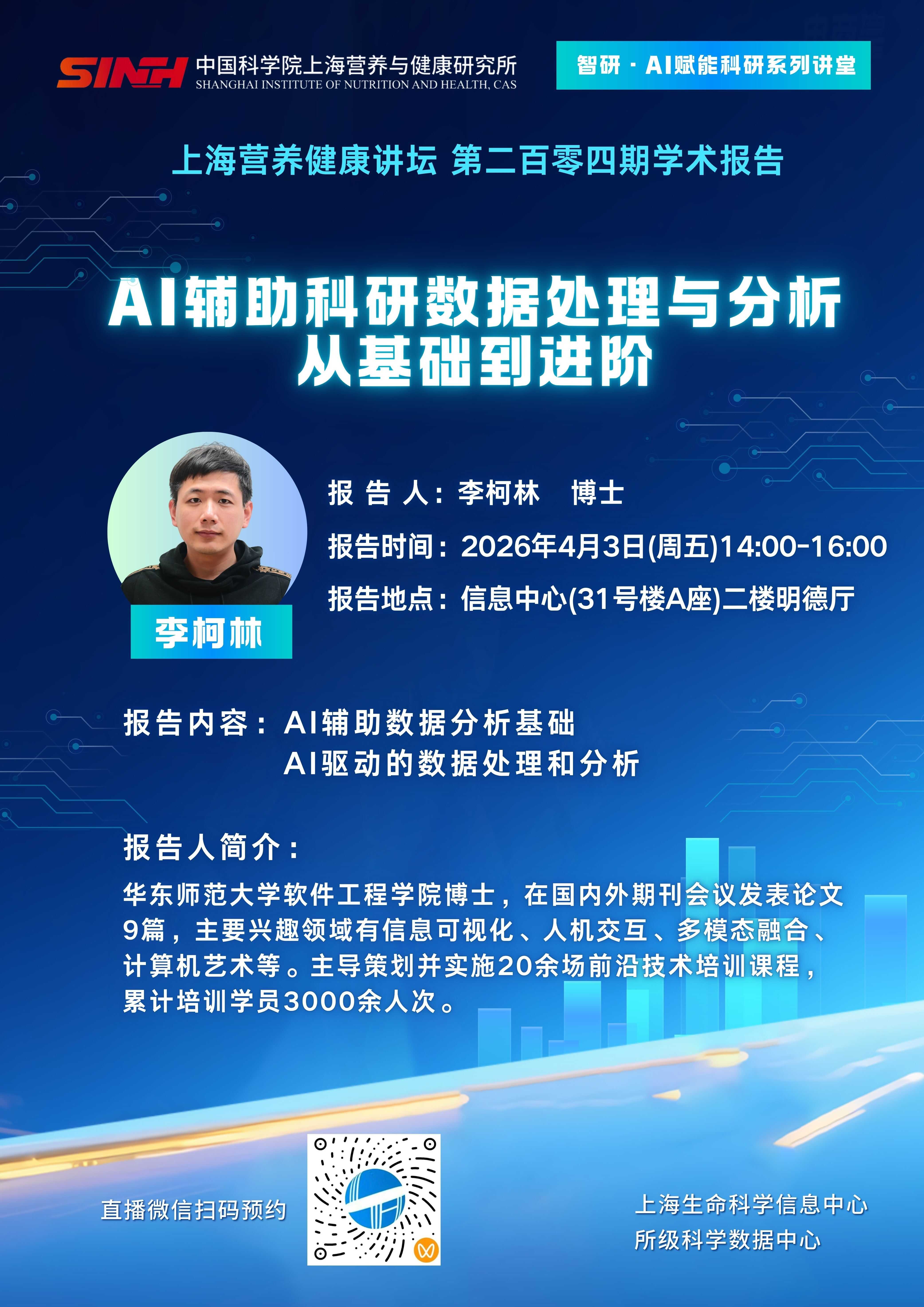 4月3日|AI輔助科研數(shù)據(jù)處理與分析:從基礎(chǔ)到進(jìn)階-上海營(yíng)養(yǎng)健康講壇