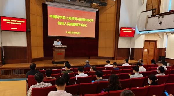 2022年7月8日下午,中科院上海營(yíng)養(yǎng)與健康研究所召開領(lǐng)導(dǎo)人員調(diào)整宣布會(huì)議,上海分院分黨組書記、滬區(qū)黨委書記李正華,上海市科技黨委及上海分院組織部門相關(guān)同志,研究所領(lǐng)導(dǎo)班子成員、兩委委員、科研骨干代表、中層干部、黨支部書記等參加會(huì)議。會(huì)議由上海分院人力資源部主任兼組織干部處處長(zhǎng)胡嘉主持。