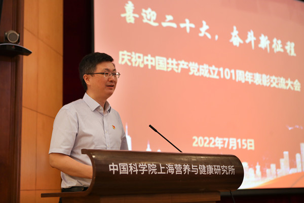 會(huì)上,胡國(guó)宏宣讀了對(duì)研究所本輪疫情防控工作中表現(xiàn)突出的優(yōu)秀個(gè)人和先進(jìn)集體的表彰決定。裴旸、陳瑜潔、吳小霞、譚吉良等獲獎(jiǎng)代表分別圍繞保障園區(qū)正??蒲兄刃?、支援社區(qū)疫情防控、科技抗疫充實(shí)檢測(cè)力量等暢談了各自崗位上的抗疫經(jīng)歷,從不同角度展示了營(yíng)養(yǎng)與健康所人同心抗疫、敢于擔(dān)當(dāng)、共克時(shí)艱的良好精神風(fēng)貌。胡金波、瞿榮輝等向老同志代表頒發(fā)了“光榮在黨50年”紀(jì)念章,全場(chǎng)用熱烈的掌聲向老黨員們致以崇高敬意。