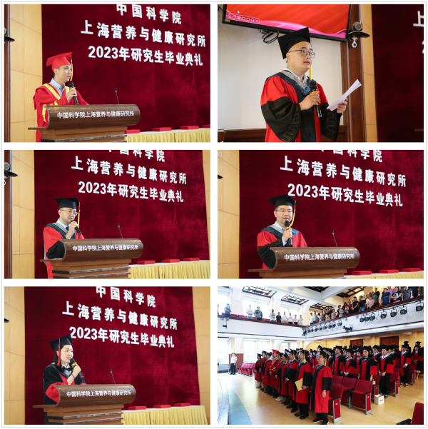 6月21日,中國(guó)科學(xué)院上海營(yíng)養(yǎng)與健康研究所2023年研究生畢業(yè)典禮在生理樓報(bào)告廳隆重舉行。營(yíng)養(yǎng)與健康所副所長(zhǎng)(主持工作)、學(xué)位評(píng)定委員會(huì)主席胡國(guó)宏,學(xué)位評(píng)定委員會(huì)副主席邵振,學(xué)位評(píng)定委員會(huì)委員李于、張國(guó)慶,導(dǎo)師代表王躍祥、黃濤、金穎、孫宇、熊燕、楊黃恬,2022屆、2023屆畢業(yè)生以及研究生部教育管理人員參加了本次典禮。畢業(yè)典禮由邵振主持。