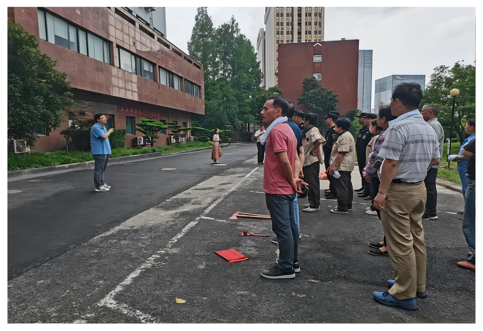 本次消防演練共分逃生疏散、應(yīng)急救援、滅火實(shí)操、總結(jié)四個(gè)環(huán)節(jié)。全體參與人員根據(jù)演練方案,在各環(huán)節(jié)銜接順暢,順利完成演練。期間綜合管理處和物業(yè)對(duì)各類消防器具使用方法、逃生與急救的注意事項(xiàng)進(jìn)行了講解。
